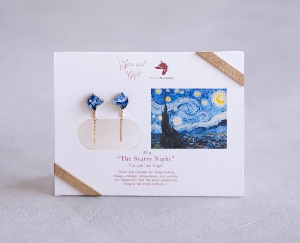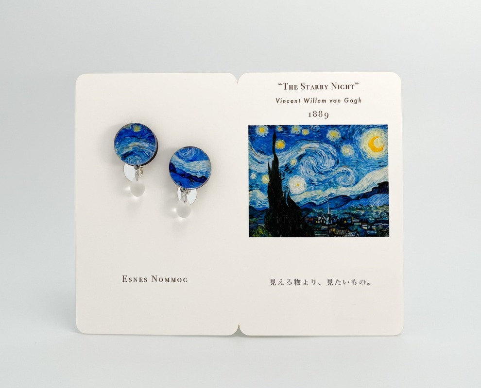 「Esnes Nommoc」のアクセサリーは、身につけて楽しむだけでなく、飾って愛でることもできるアイテム。ゴッホの世界観を耳元に纏ったり、壁に掛けて眺めたり――そんなわくわく感のあるアクセサリーです。美術館巡りが好きな方や、日常にアートを取り入れたい方へのギフトにもぴったり。アートを纏うことで、毎日の時間が少し特別に感じられる。そんな小さな喜びを、日常にも取り入れてみませんか。