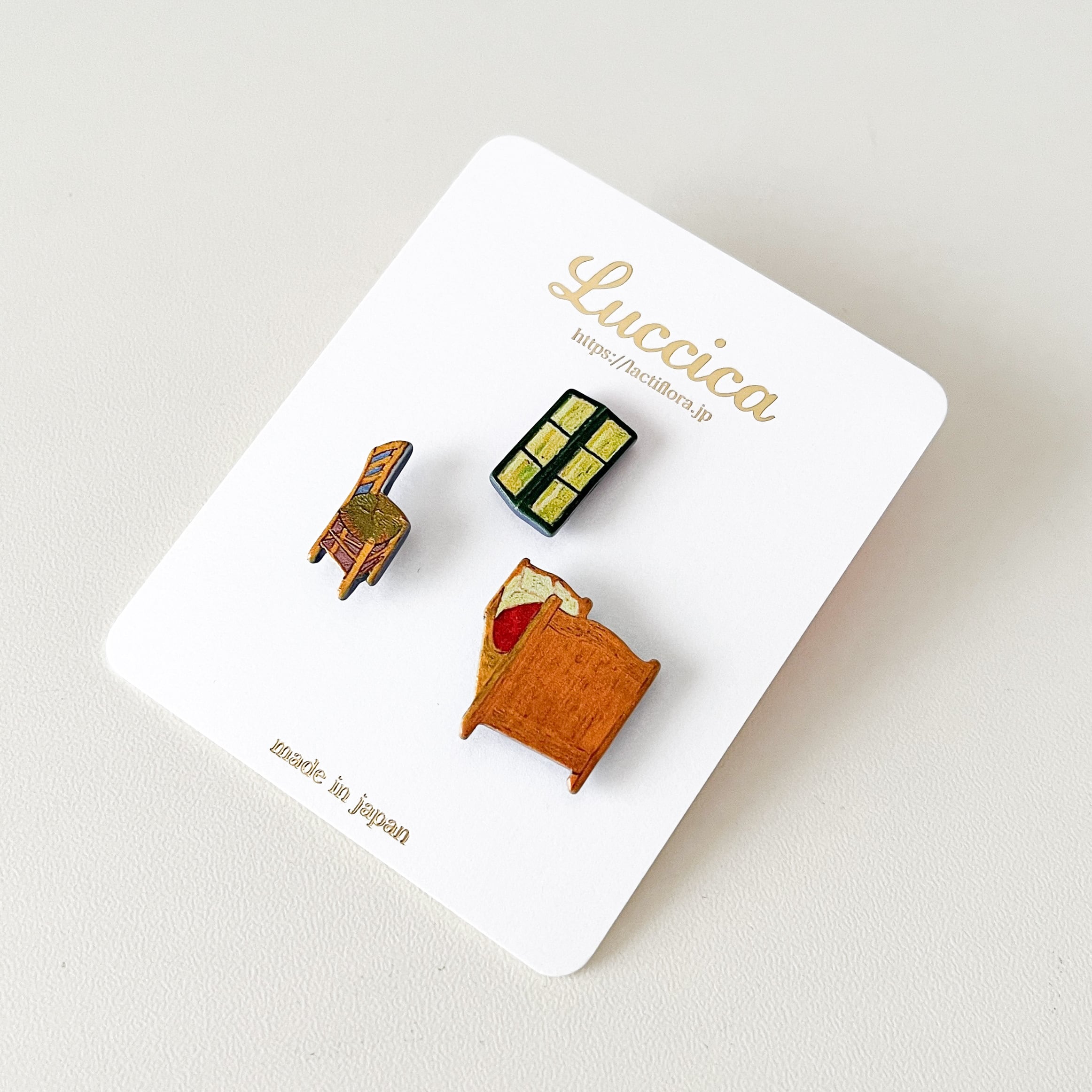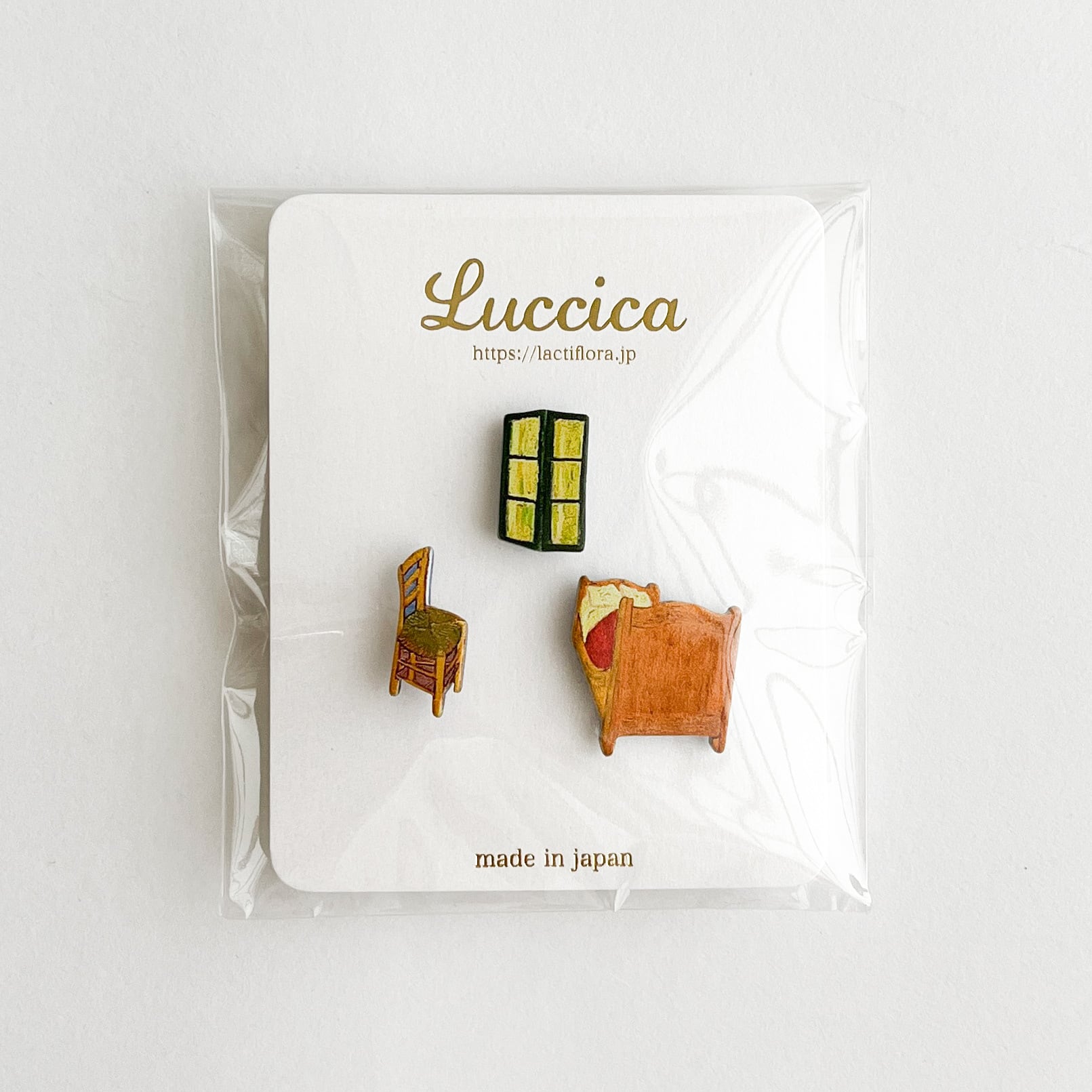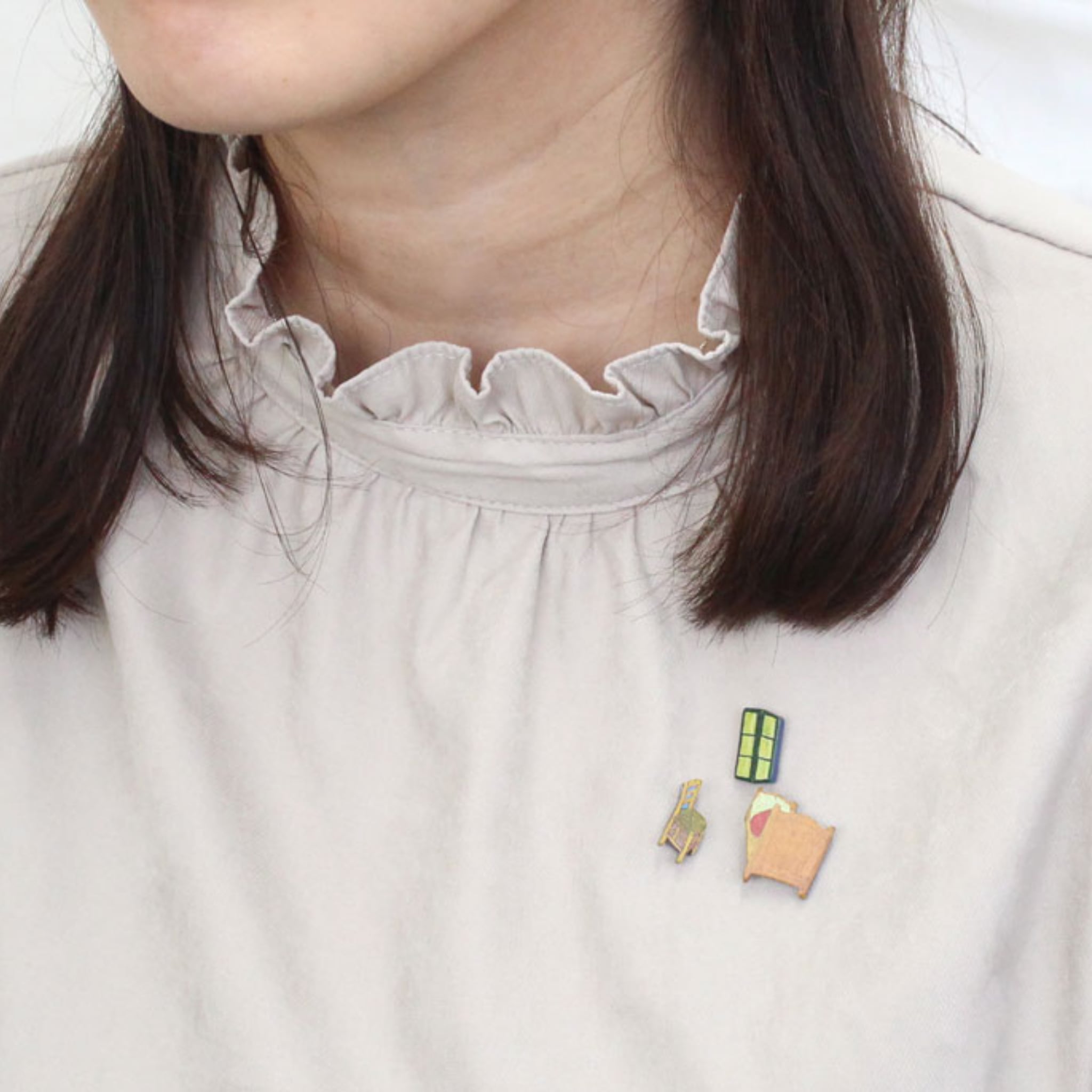 ゴッホの「アルルの寝室」の室内に描かれた家具や窓がブローチになりました。小さめサイズながら精緻なプリントで、ゴッホの筆遣いが感じられるアイテムです。