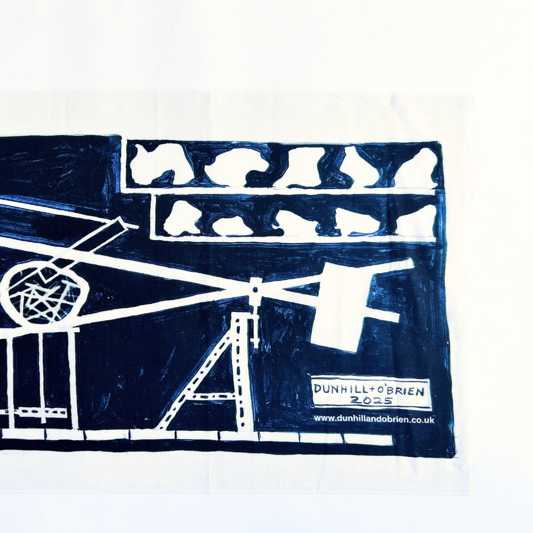 日本の夏といえば手ぬぐい。ハンカチにもタオルにもなる万能なアイテムです。この横長サイズを活かして、隅々まで作品の世界観を楽しめる、DIY展オリジナルのミュージアムグッズです。ダンヒル&オブライエンが本展覧会のために描き下ろしたイラストが、適度な厚みと温かな風合いを持つ綿布の上で生き生きと息づいています。