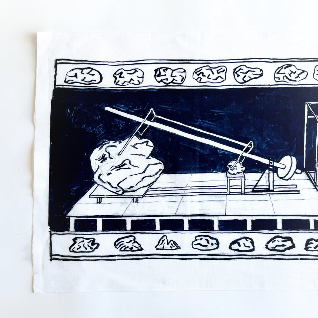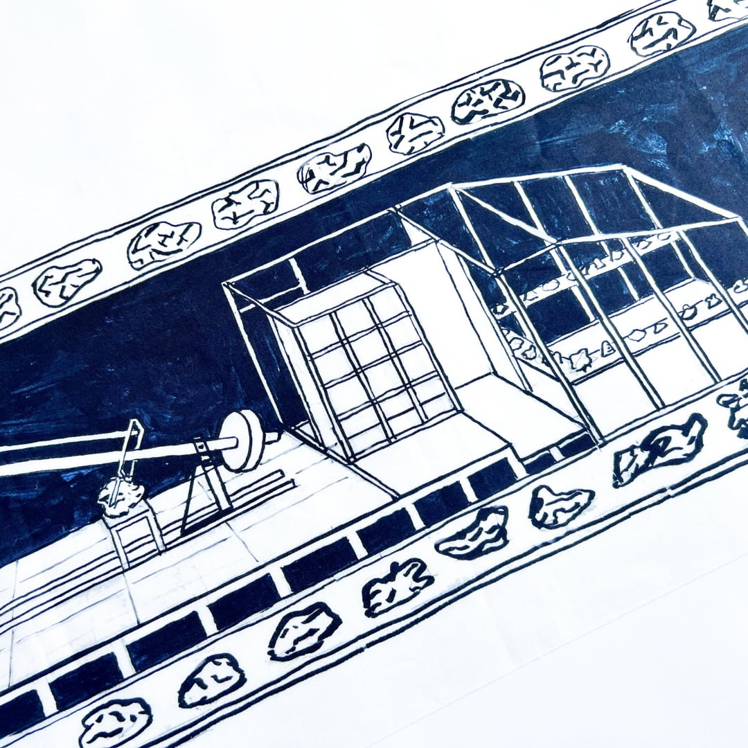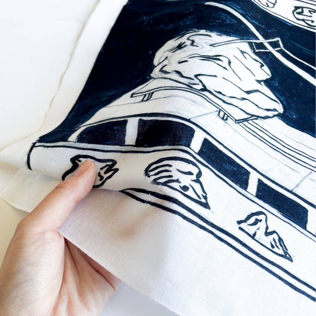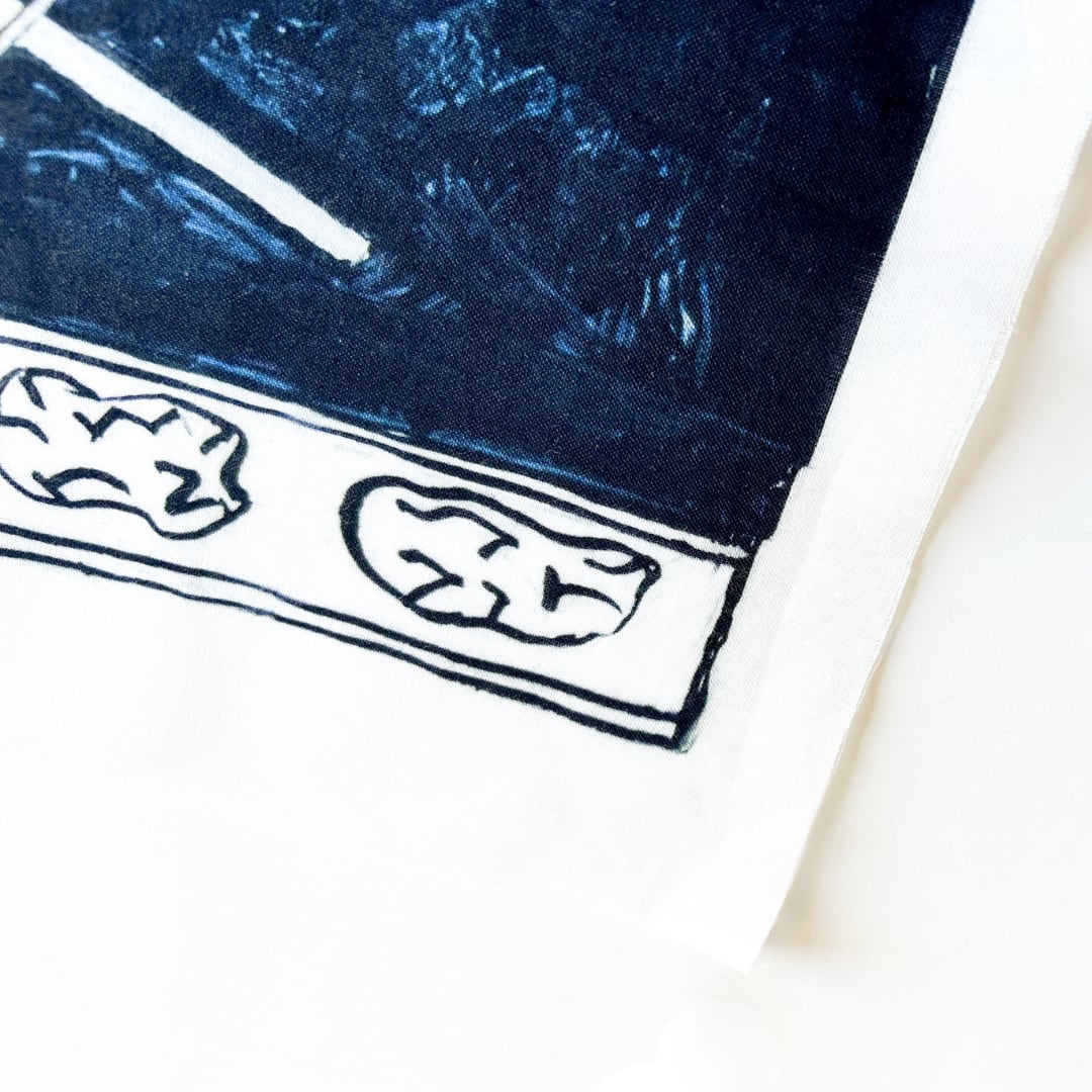 日本の夏といえば手ぬぐい。ハンカチにもタオルにもなる万能なアイテムです。この横長サイズを活かして、隅々まで作品の世界観を楽しめる、DIY展オリジナルのミュージアムグッズです。ダンヒル&オブライエンが本展覧会のために描き下ろしたイラストが、適度な厚みと温かな風合いを持つ綿布の上で生き生きと息づいています。