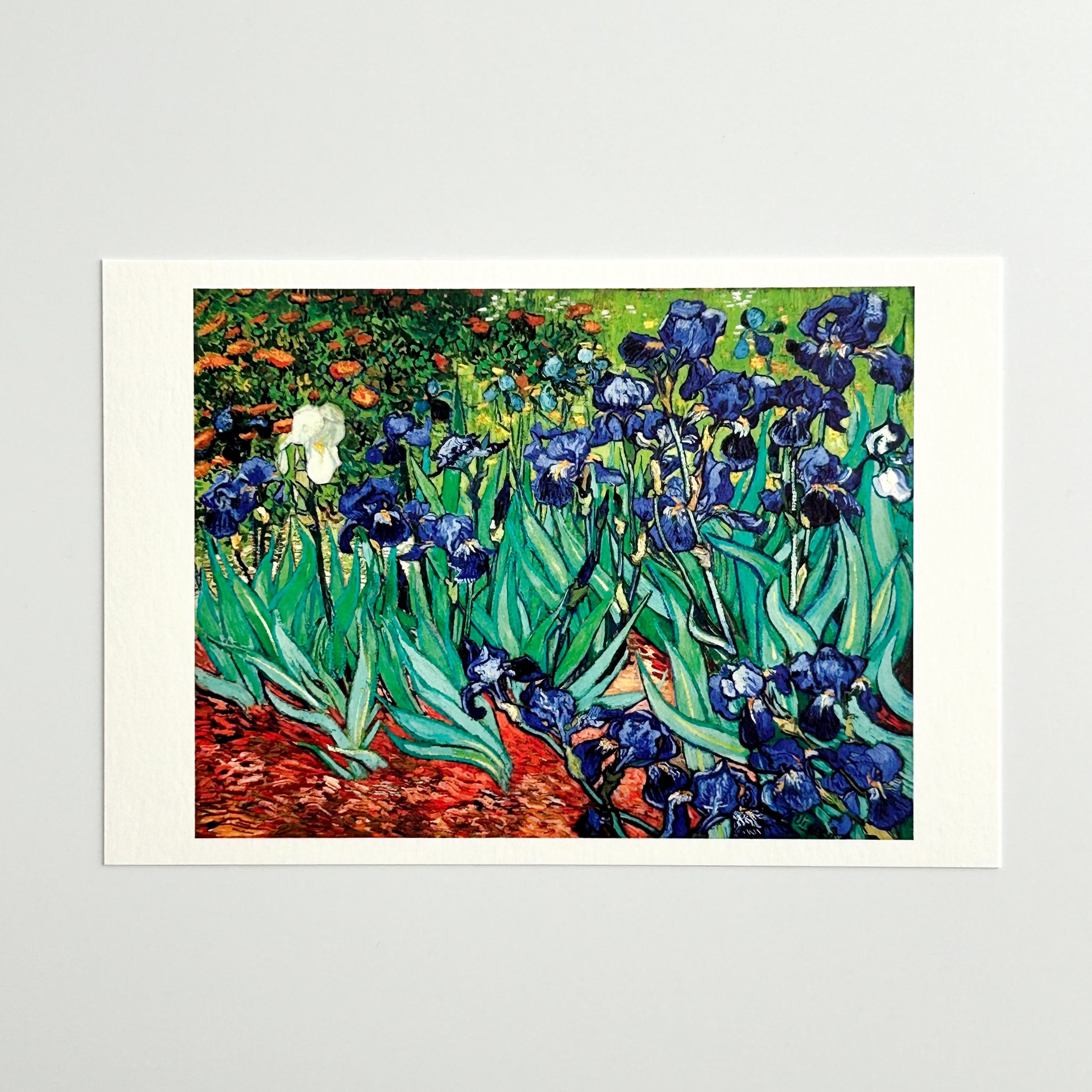 鮮やかな青くて美しいアイリス(菖蒲)。花の力強さが感じられます。ゴッホは、この作品以外にも、アイリスを題材とした作品を複数描いていることが知られていますが、サン=レミ=ド=プロヴァンスの療養所に入所してすぐに描いたのが、この作品と言われています。ゴッホがこの世を去る前年のことです。1889年5月、パリのアンデパンダン展に出品されました。輪郭がはっきりとしていて、着色も平面的で、日本の浮世絵の影響が見られます。
