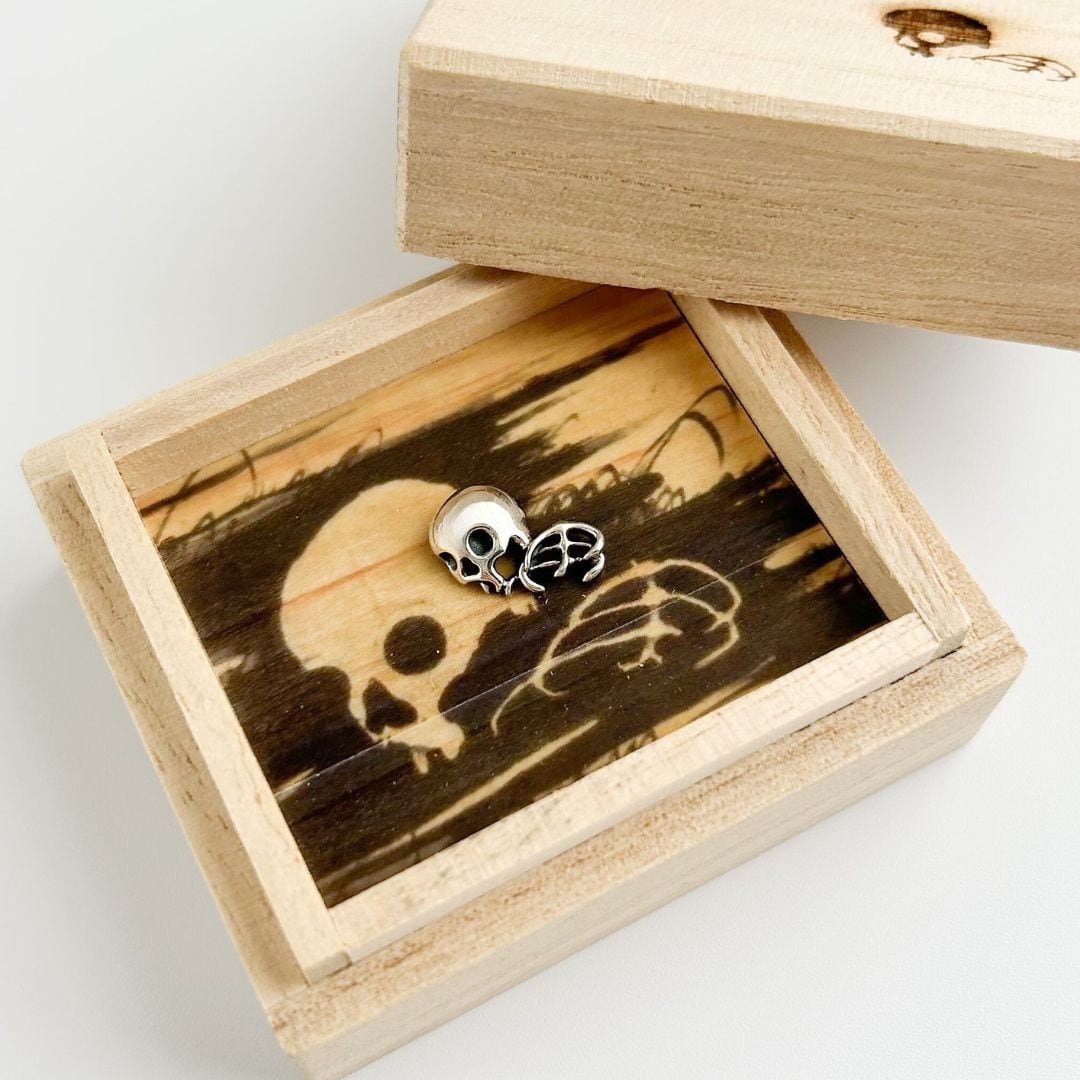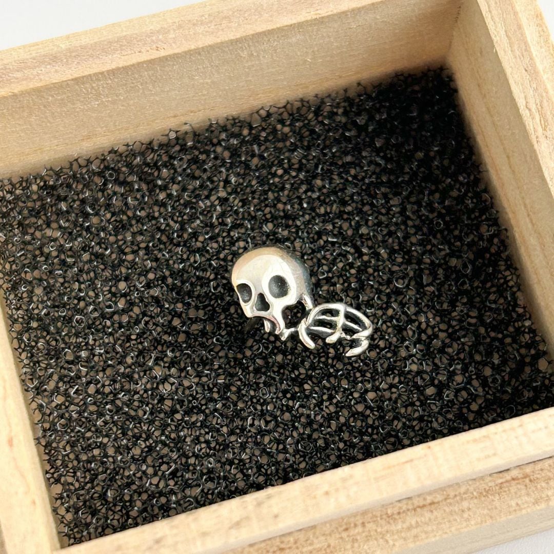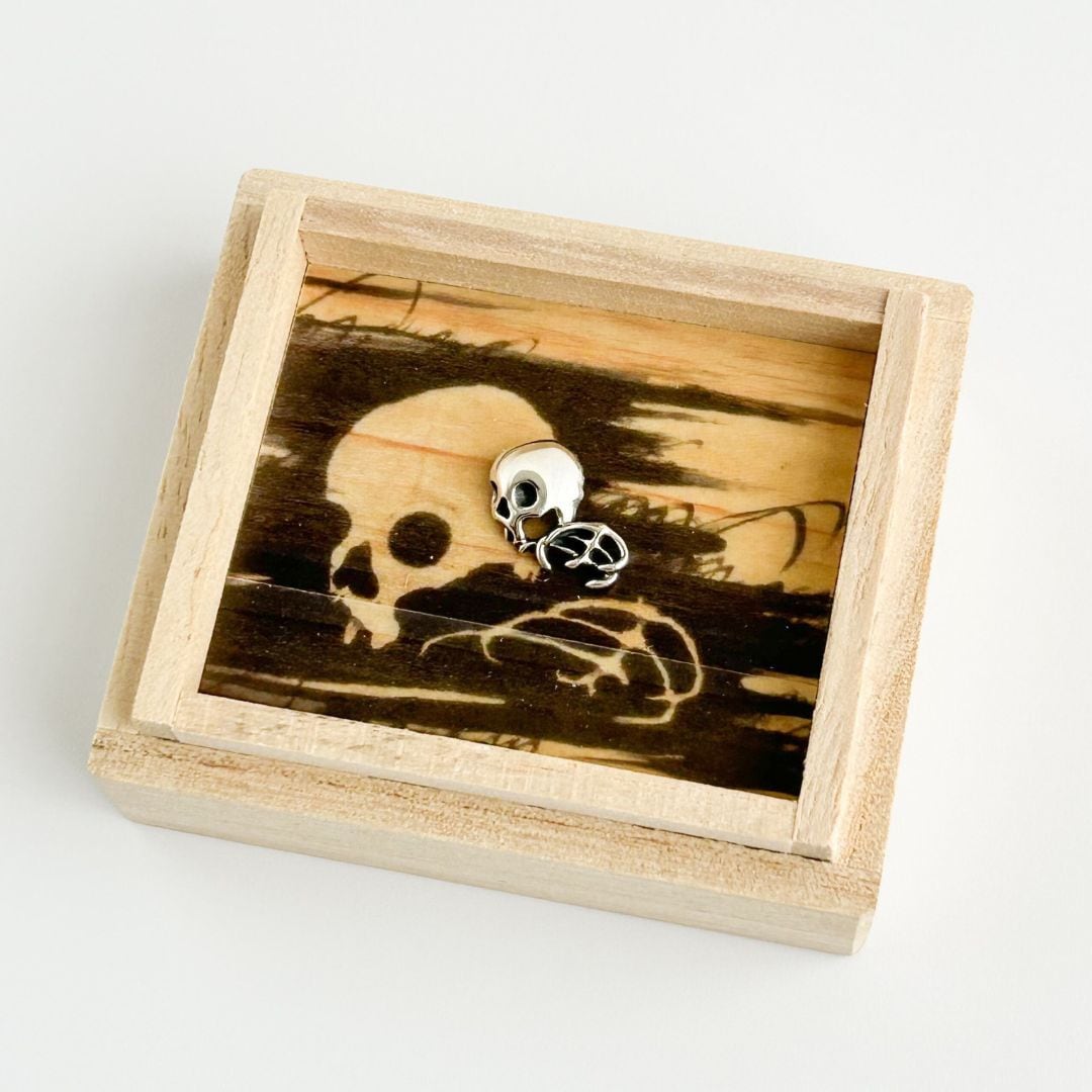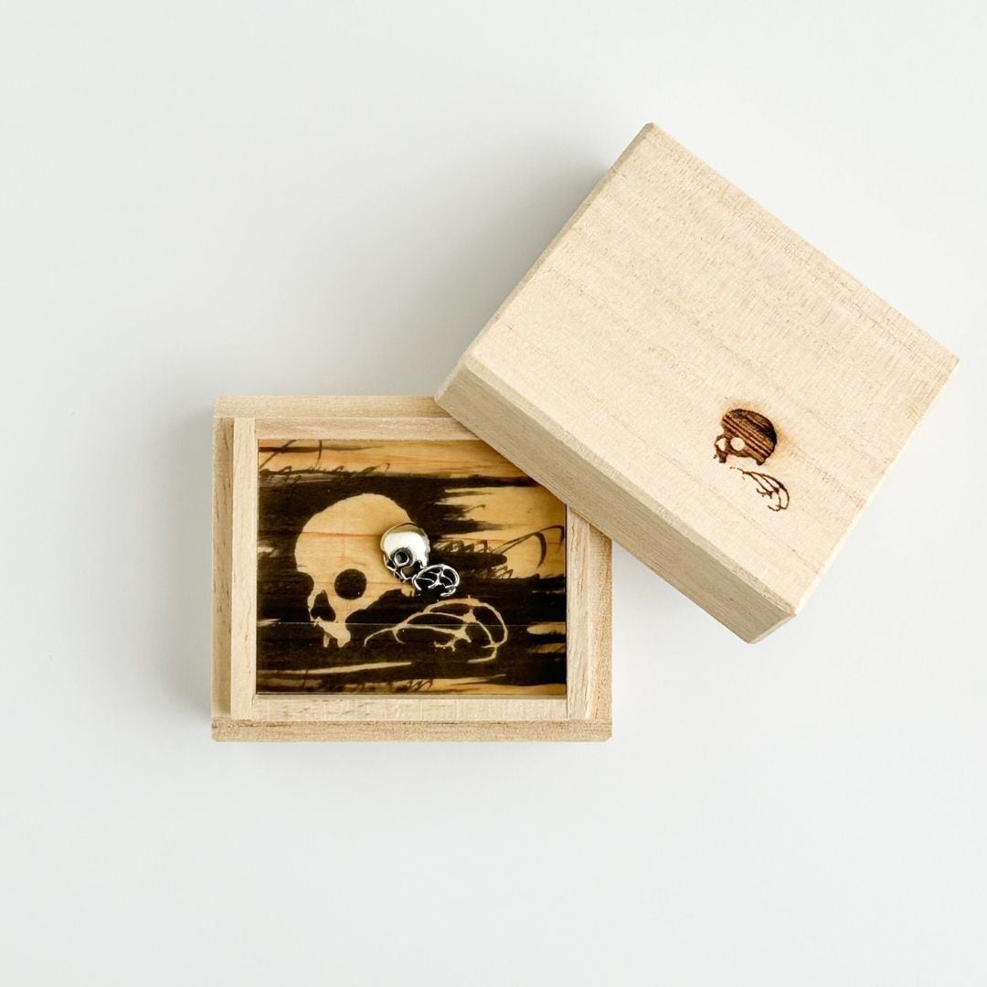 伊藤若冲の名作が、静謐な美しさを持つ1Pピアスになりました。髑髏のモチーフが個性的で、片側だけにさりげなく付けておしゃれな、大人のファッションを楽しむことが出来るアクセサリーです。贈答にも使える高級感ある化粧箱入りです。
