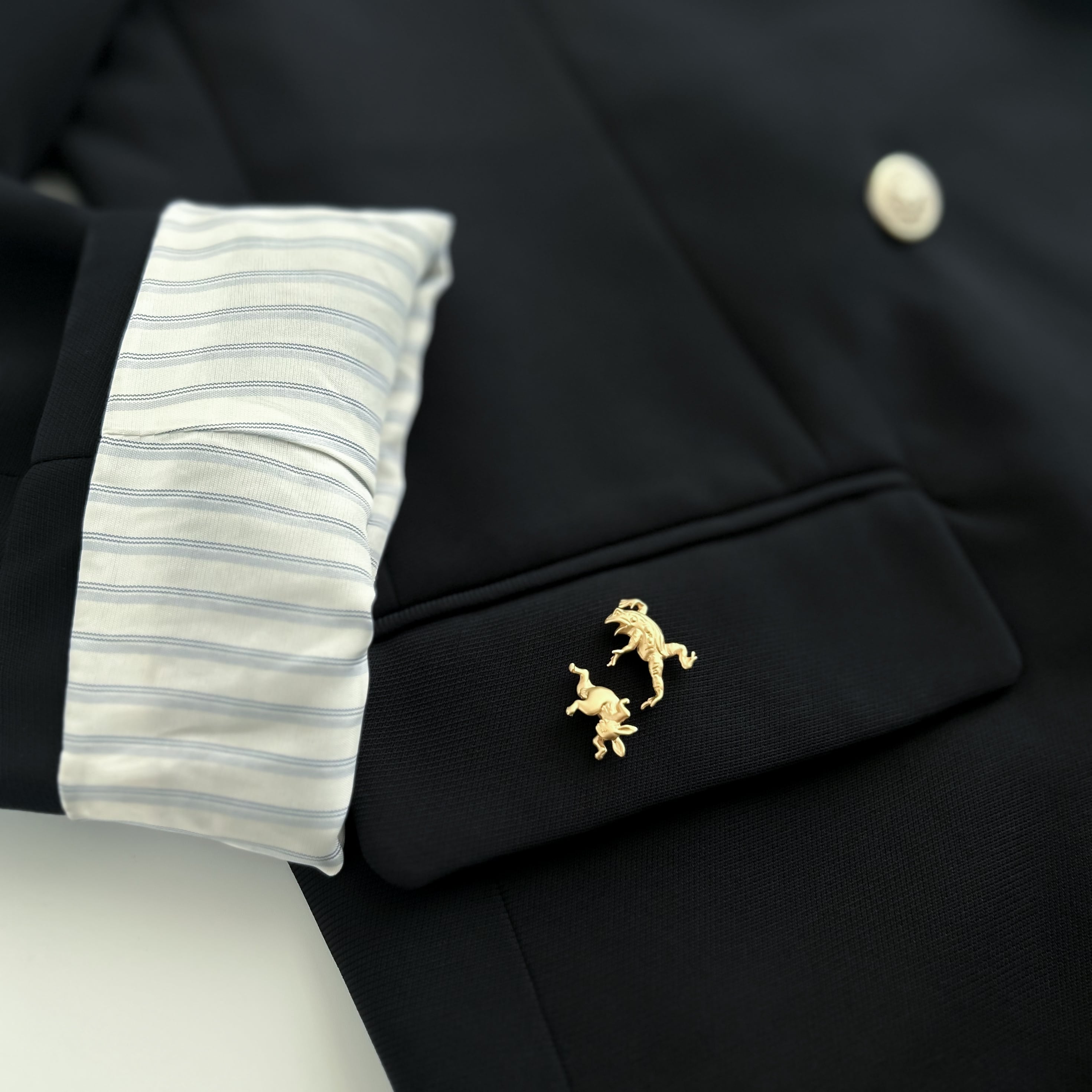 大人気の鳥獣戯画から、うさぎとかえるが相撲を取る有名な場面が、静謐な美しさを持つピンバッジになりました。バッグやブラウス、シャツなどに付けて、大人のファッションのアクセントに。