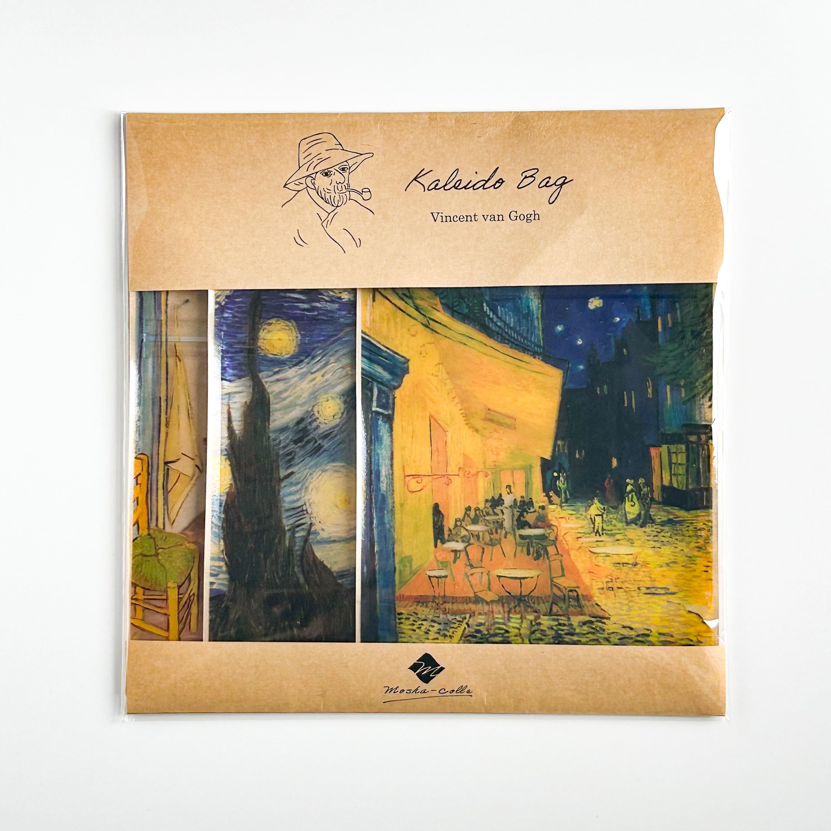 サイズ:星月夜、アルルの寝室 巾17×高15cm(マチ4.5cm×2) 夜のカフェテラス 巾12.5×高17cm(マチ3.5cm×2)