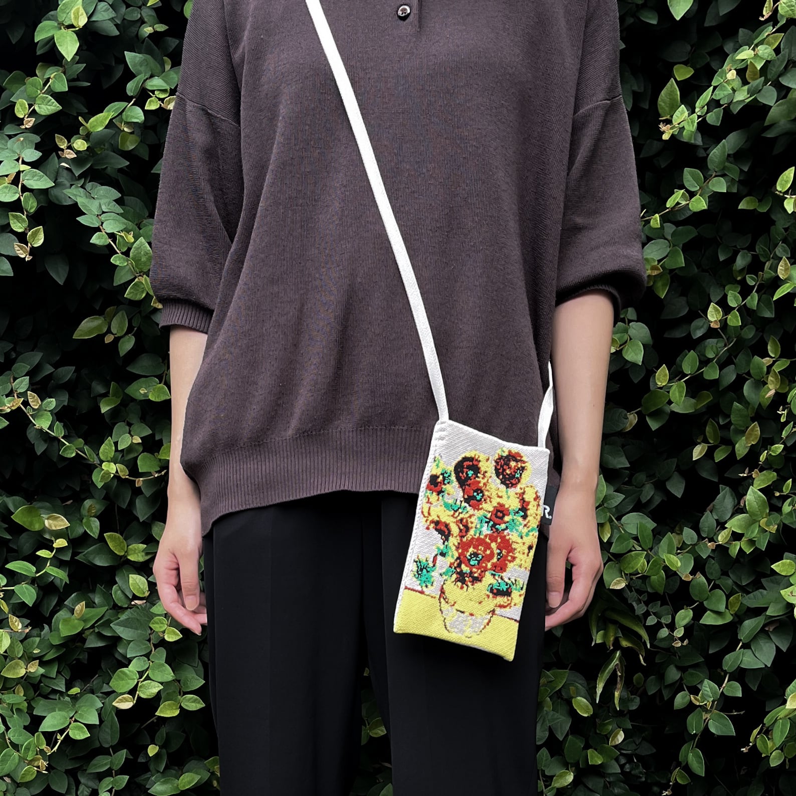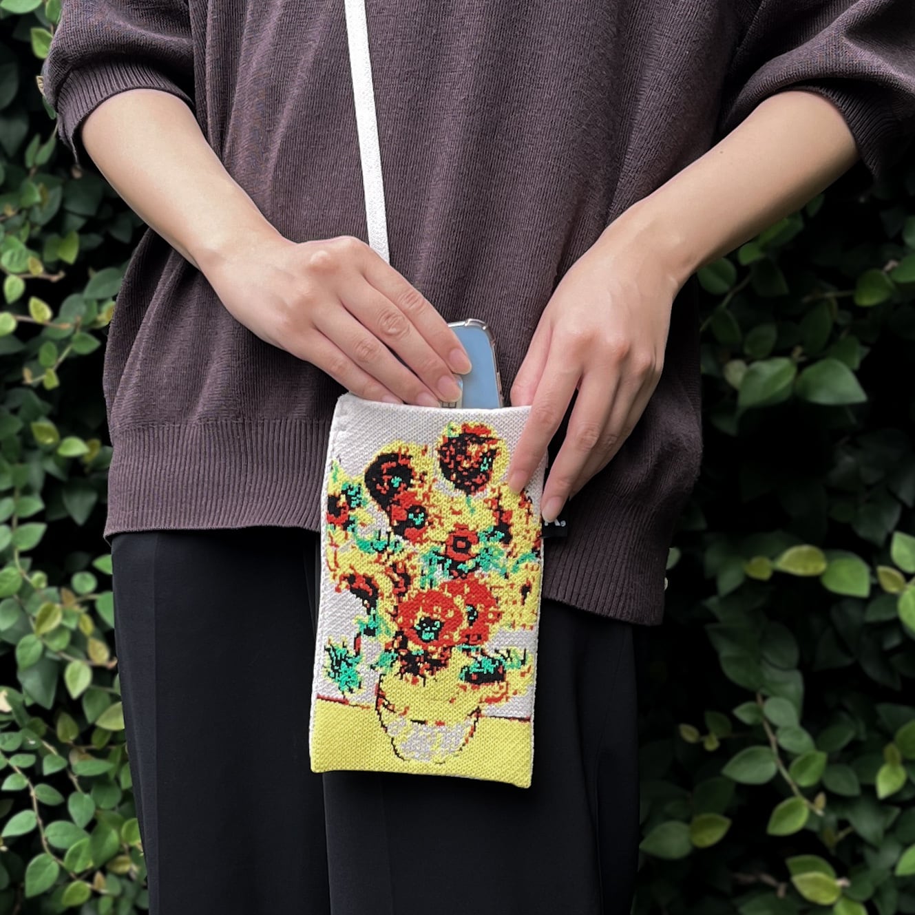 小物の持ち運びに便利なだけでなく、軽やかで柔らかな肌触りは、長時間の持ち歩きもストレスなくお使いいただけます。目を引く柄はさりげなく個性を演出し、斜めがけをしてお出かけすれば、コーディネートのアクセントに最適です。