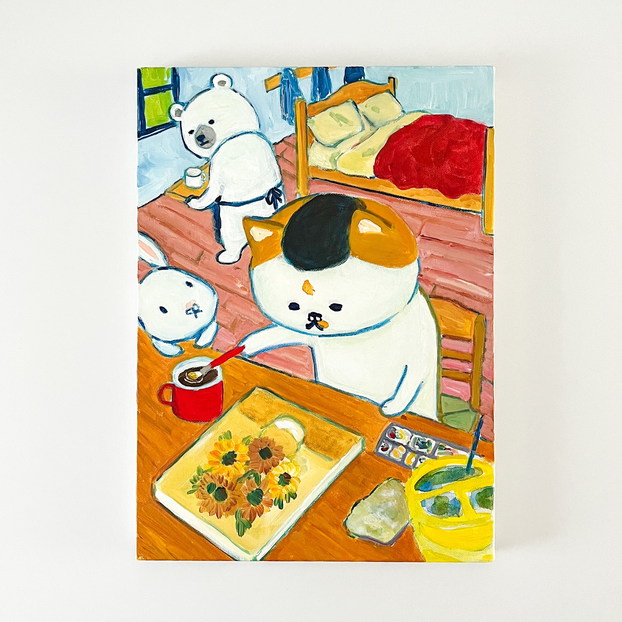 大人気pokefasuの原画です。ゴッホの世界にキャラクターたちが登場する、可愛らしい全5作品の中の一つです。