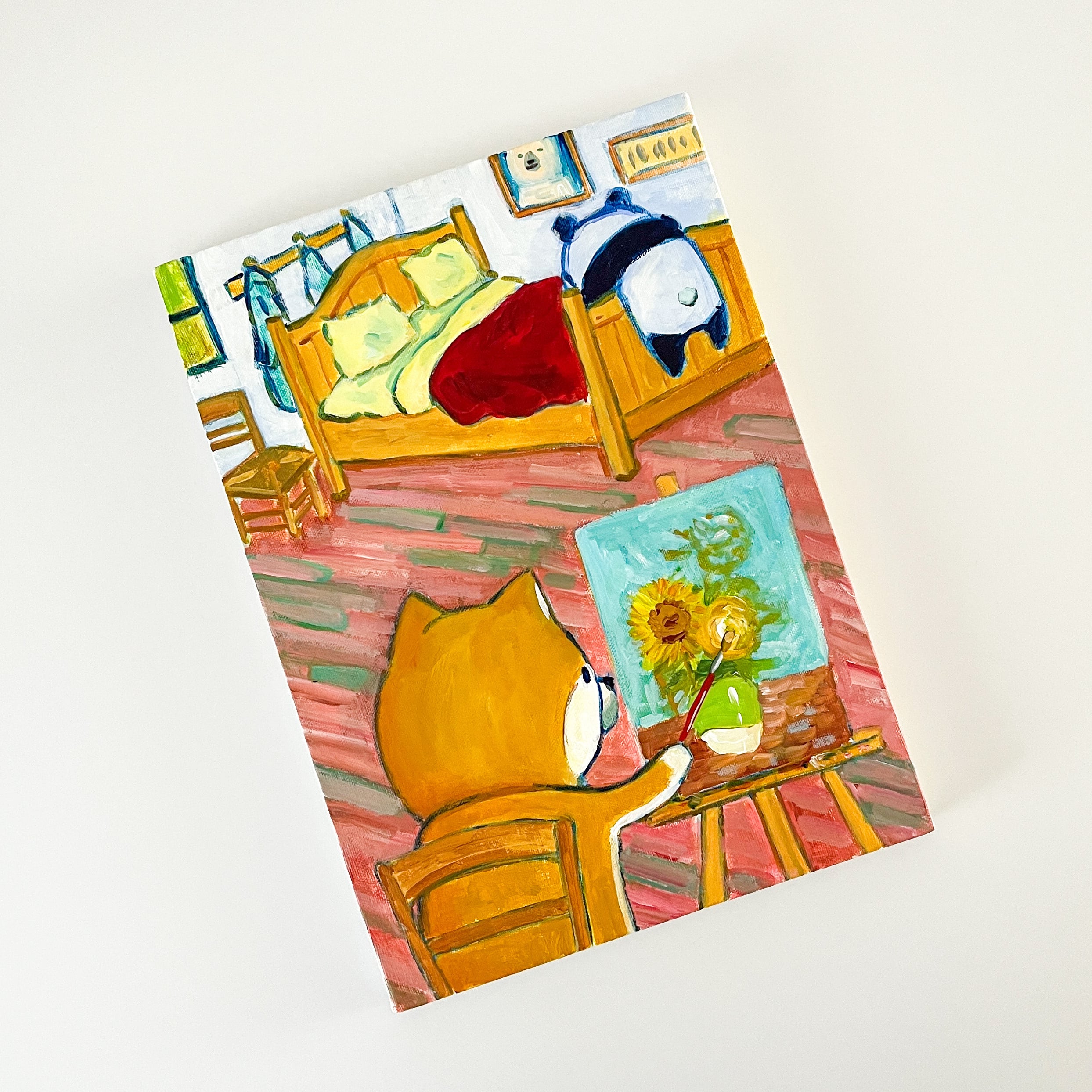 大人気pokefasuの原画です。ゴッホの世界にキャラクターたちが登場する、可愛らしい全5作品の中の一つです。