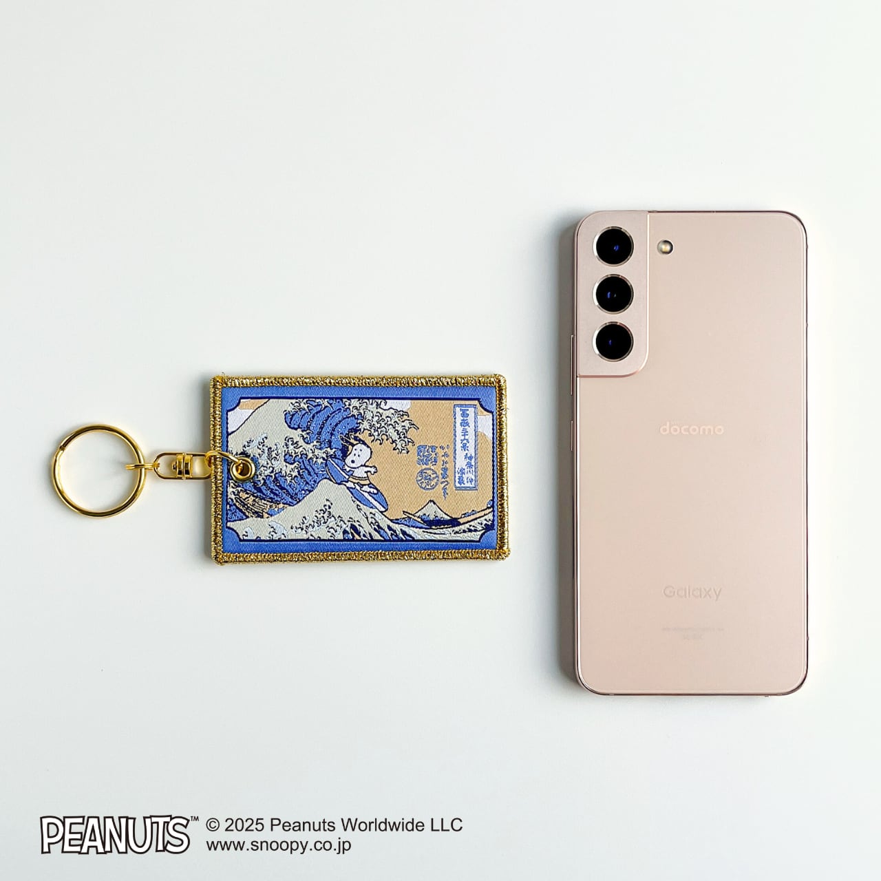 北斎とSNOOPYのコラボ商品に、華やかな刺繍キーホルダーが登場しました。表面と裏面で異なるデザインを楽しめる両面仕様となっており、見る角度によって異なる表情をお楽しみいただけます。存在感のあるサイズながらも、薄型・軽量で、ポケットやバッグの中でも邪魔になりません。バッグチャームとしてもお使いいただける、おしゃれなミュージアムグッズです。