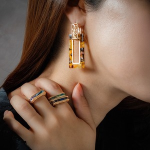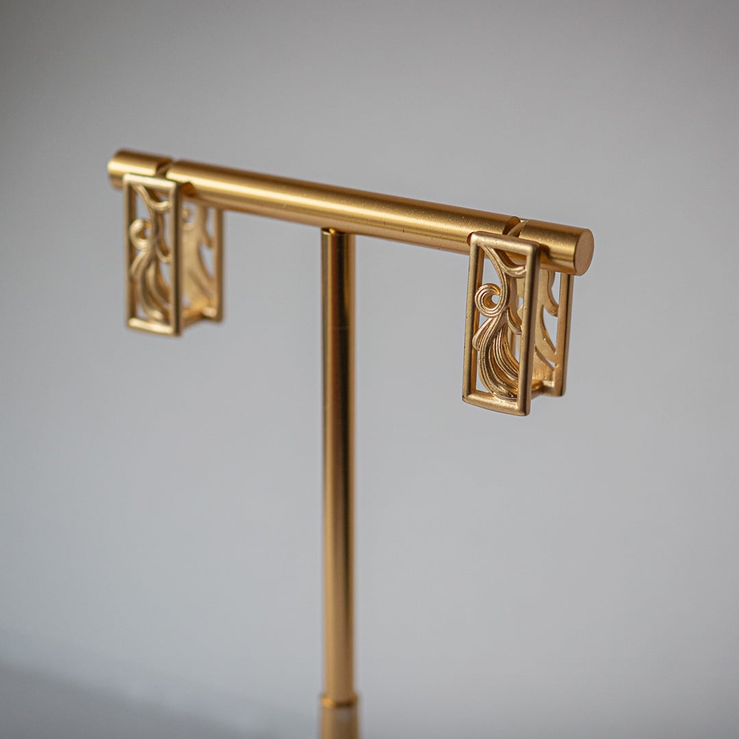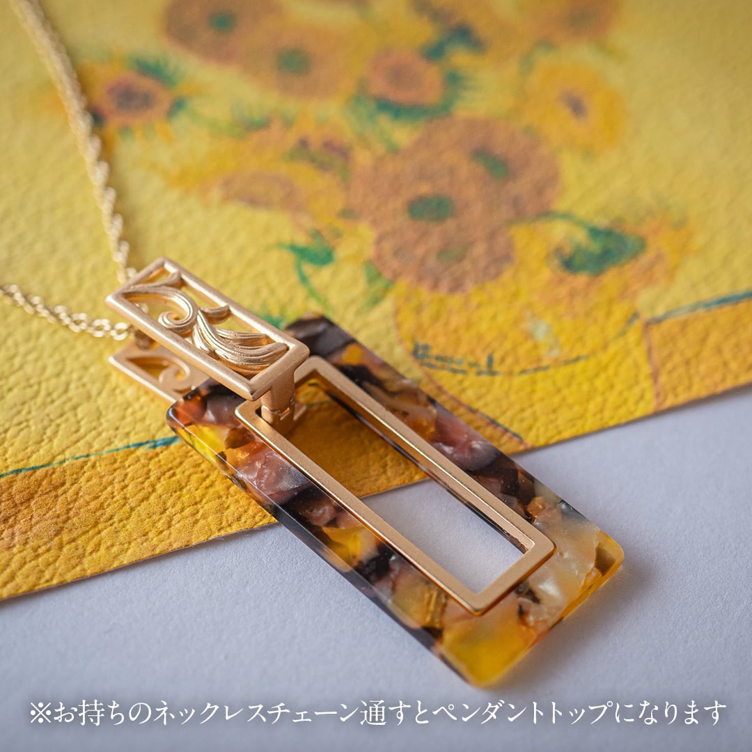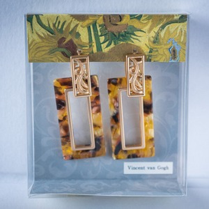 額縁のようなフォルムに、それぞれの名画からインスパイアされた、色彩のゆらめきを閉じ込めた2WAYピアス。アートパーツは着脱可能で、シーンに応じて雰囲気を変えられるデザインです。