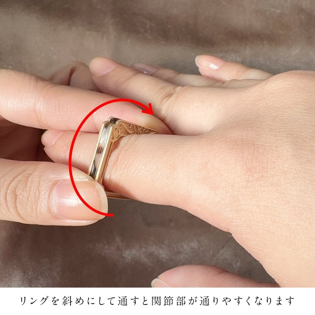 ・リングのサイズは、指の関節の形状や太さによって、記載の号数でも着用が難しい場合がございます。