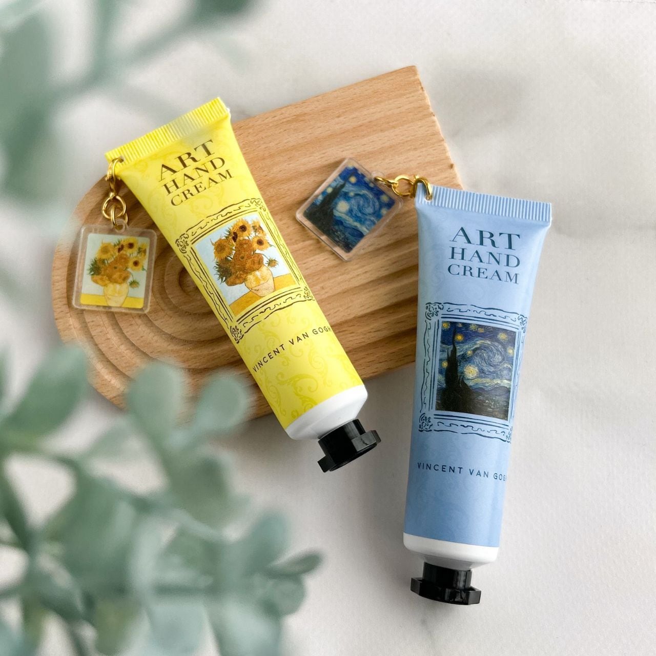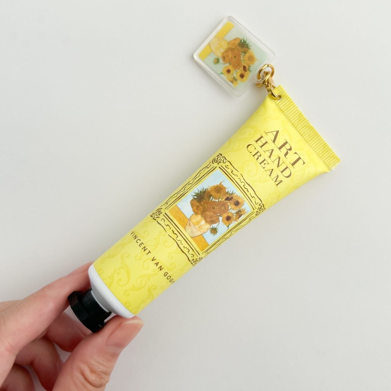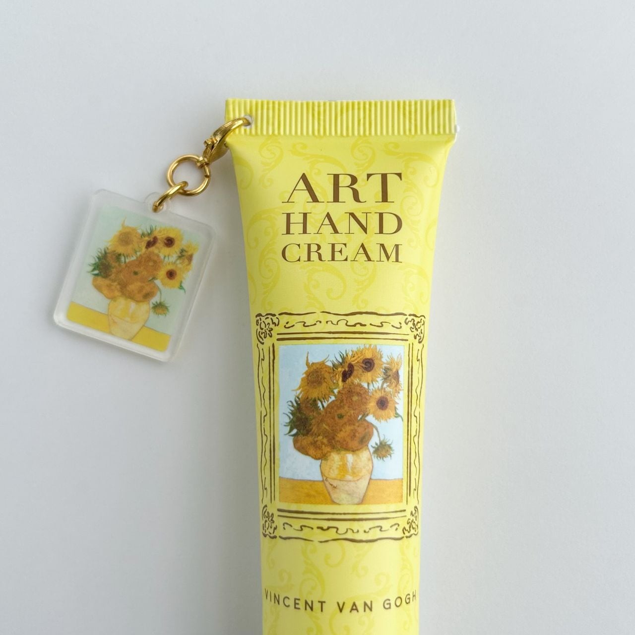 ゴッホの名画をイメージした、ひまわりの香りのハンドクリームです。取り外し可能なチャームが付いているので、ポーチやバッグに付け替えて楽しむことも出来ます。