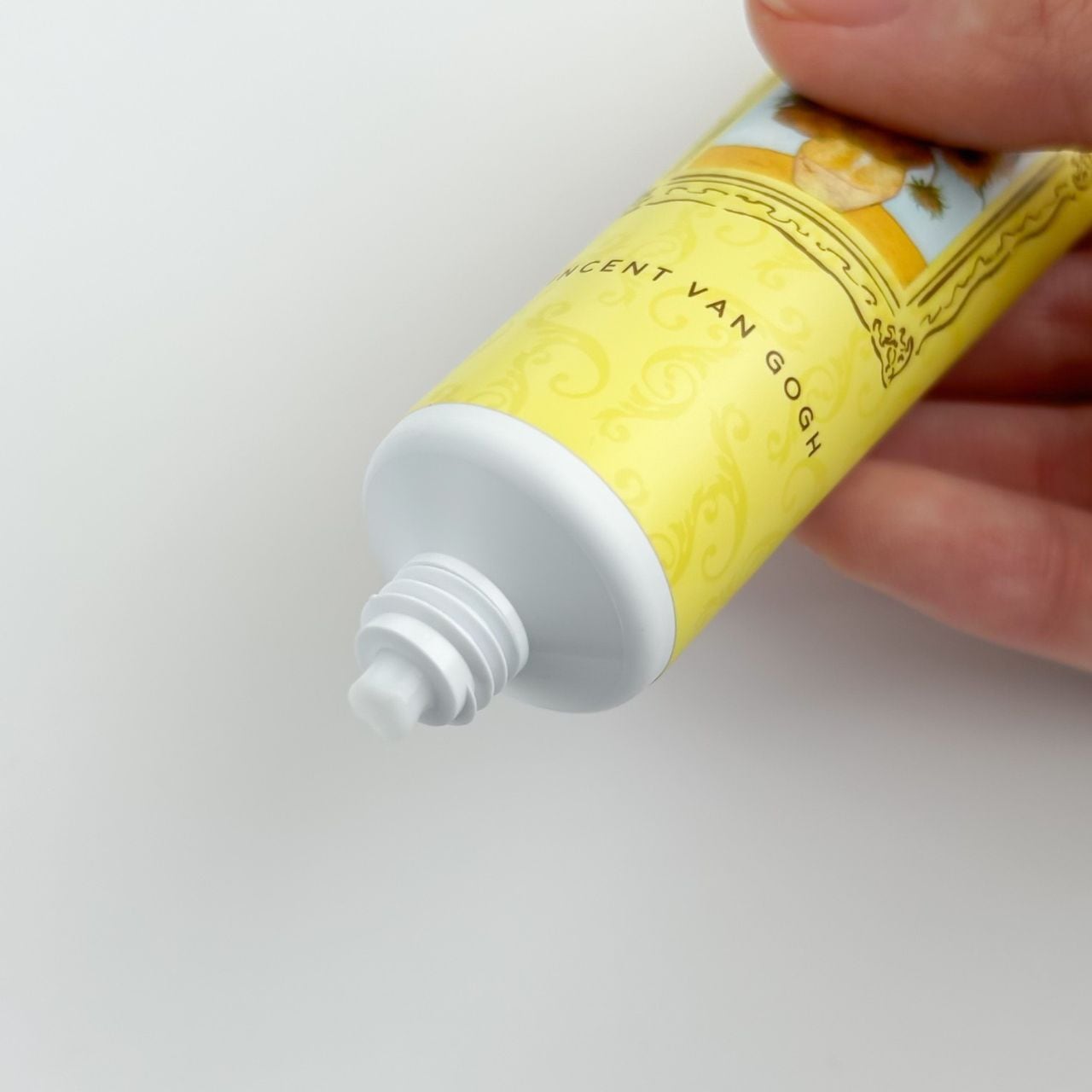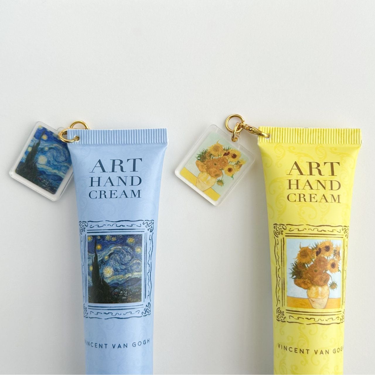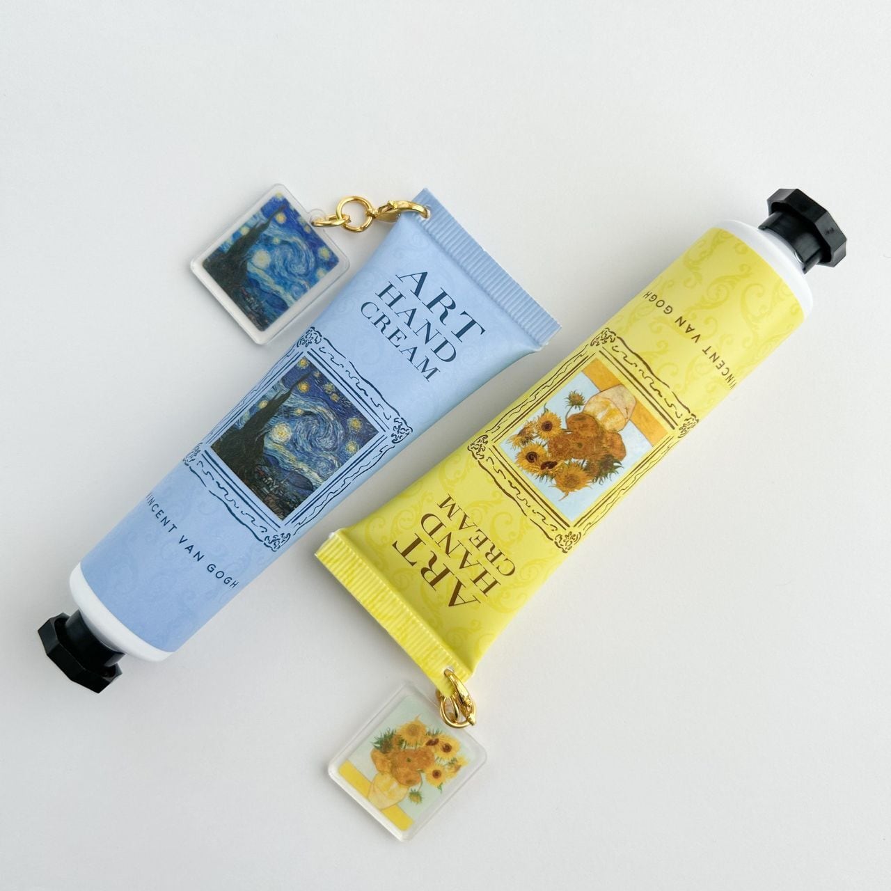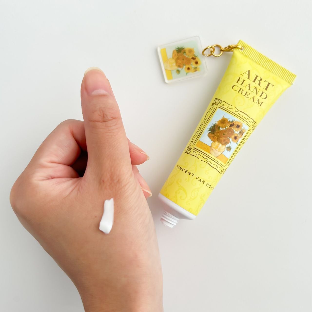 ゴッホの名画をイメージした、ひまわりの香りのハンドクリームです。取り外し可能なチャームが付いているので、ポーチやバッグに付け替えて楽しむことも出来ます。