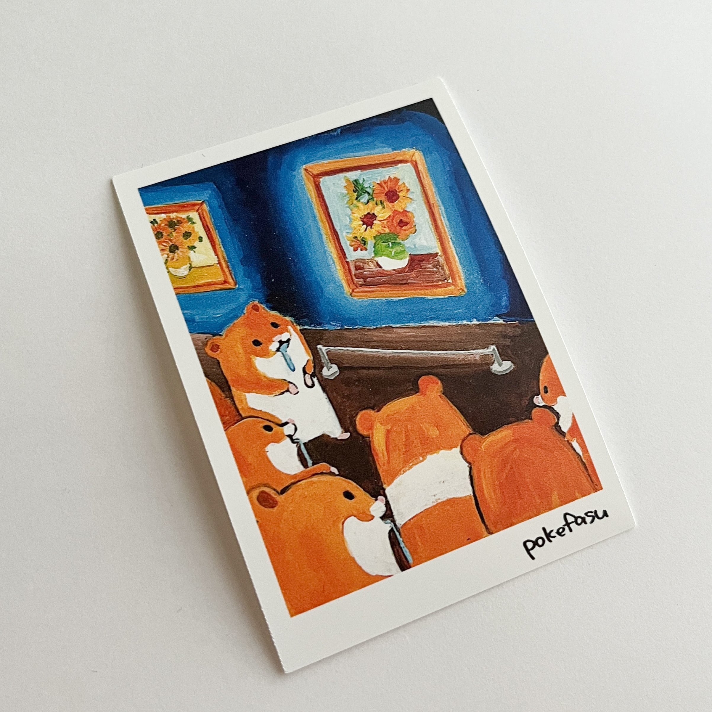 現在、原画の抽選販売を行っております、おとぼけ動物キャラクターで人気のpokefasu(ポケファス)。ゴッホの世界をイメージした5つの作品たちが、ステッカーになりました。