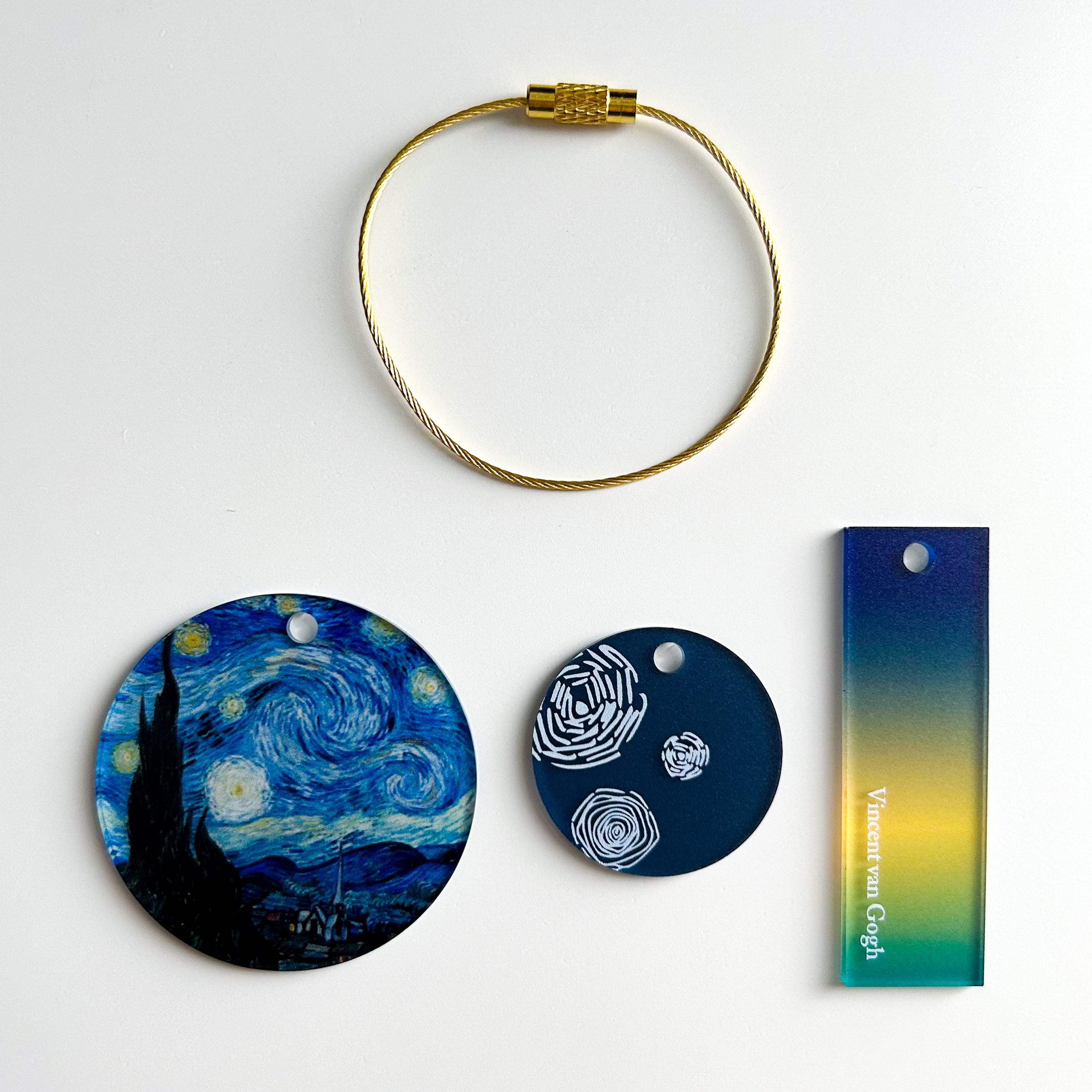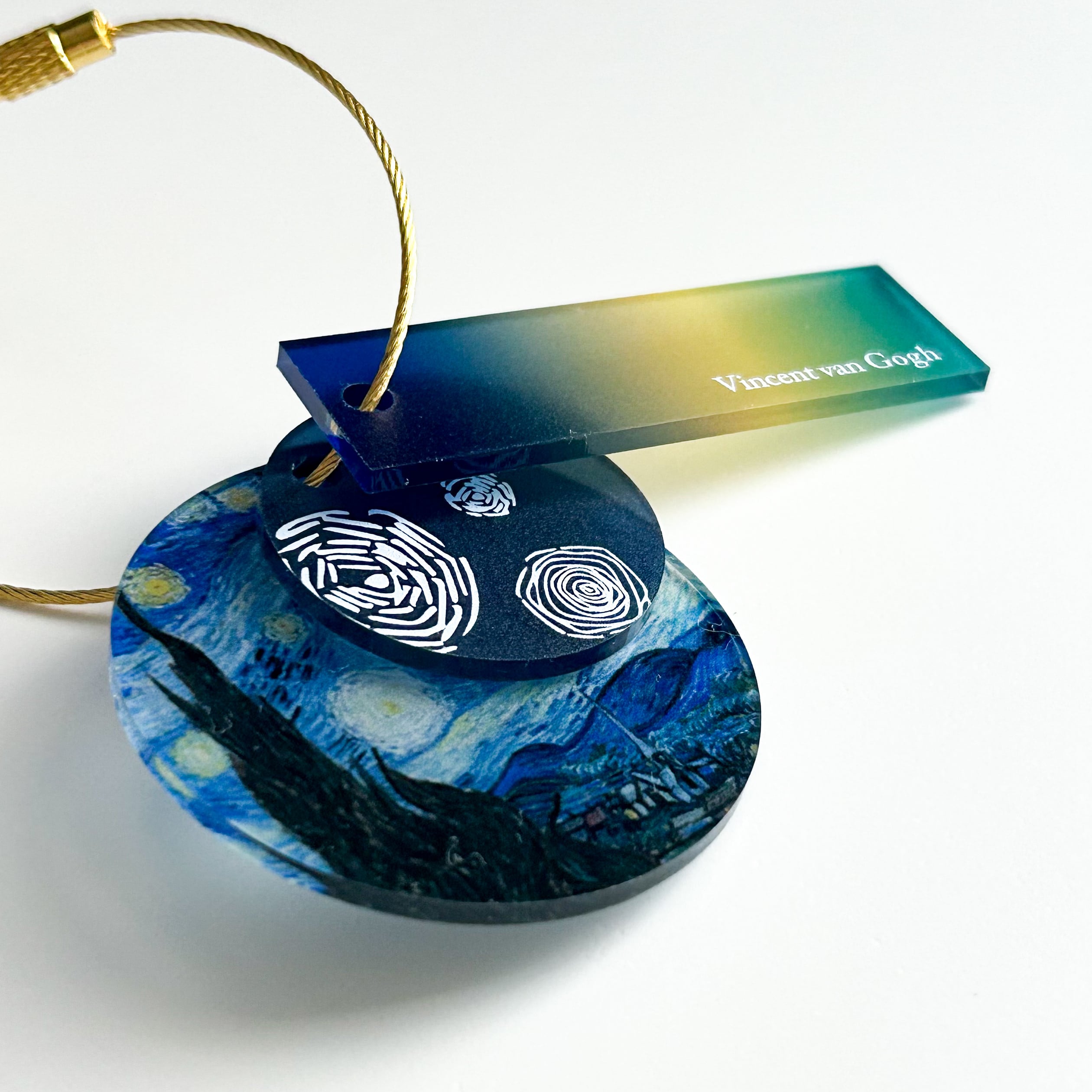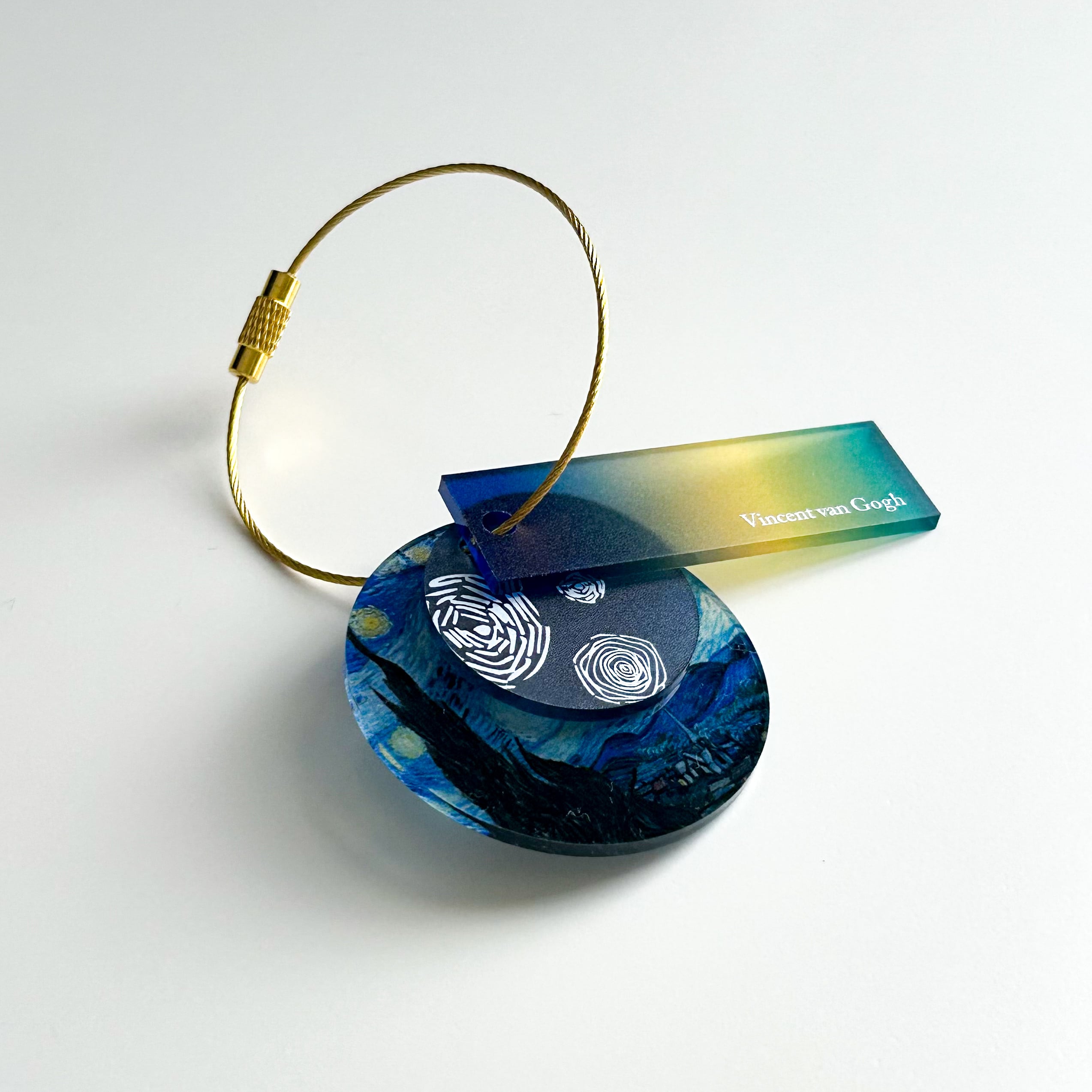 透明感あふれるアクリルに、ゴッホの名画をそのまま閉じ込めたようなキーホルダー。