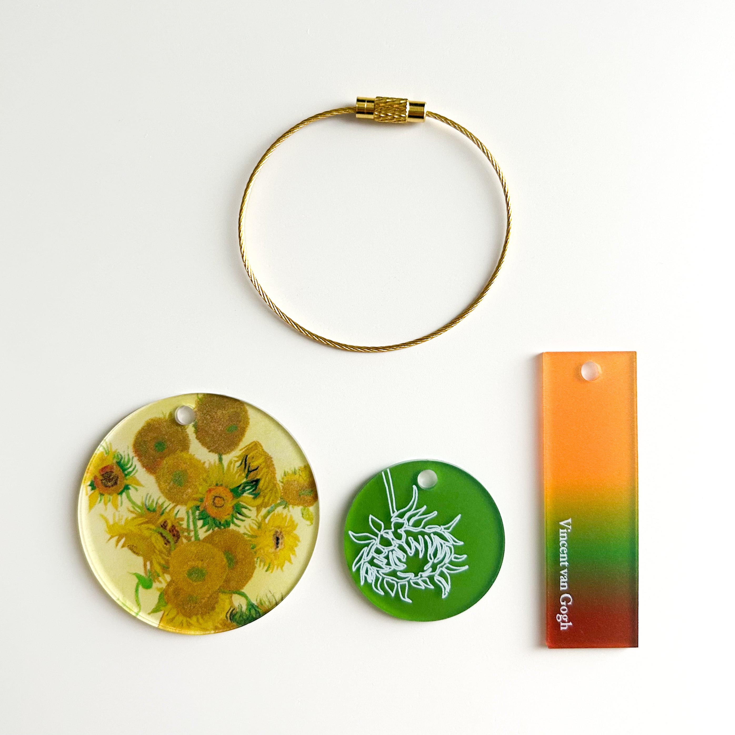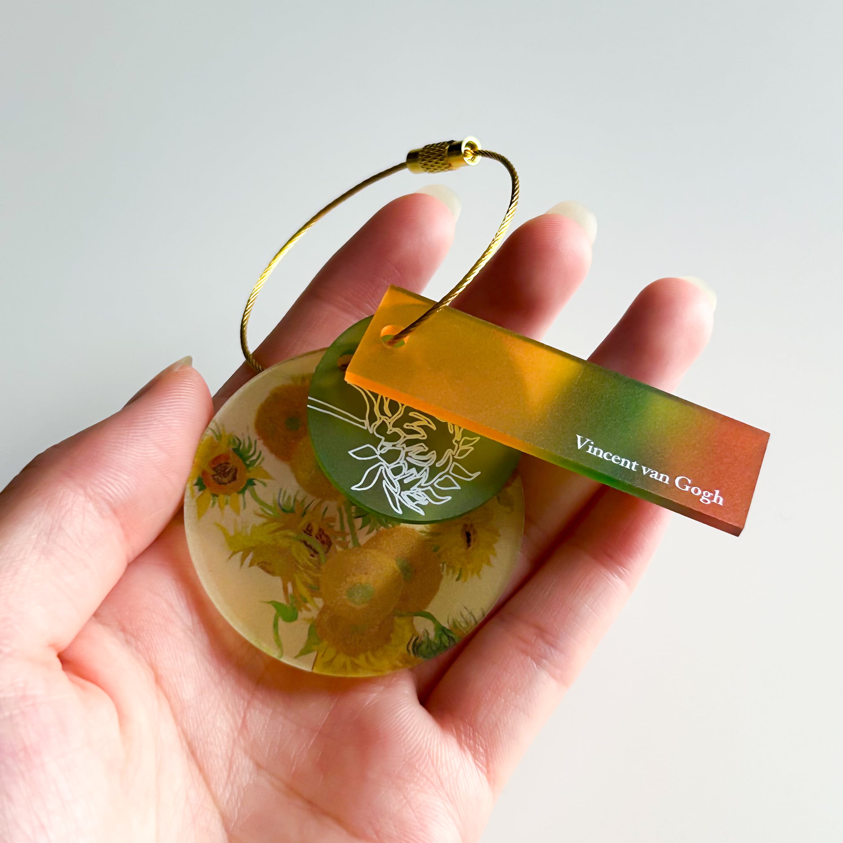 透明感あふれるアクリルに、ゴッホの名画をそのまま閉じ込めたようなキーホルダー。