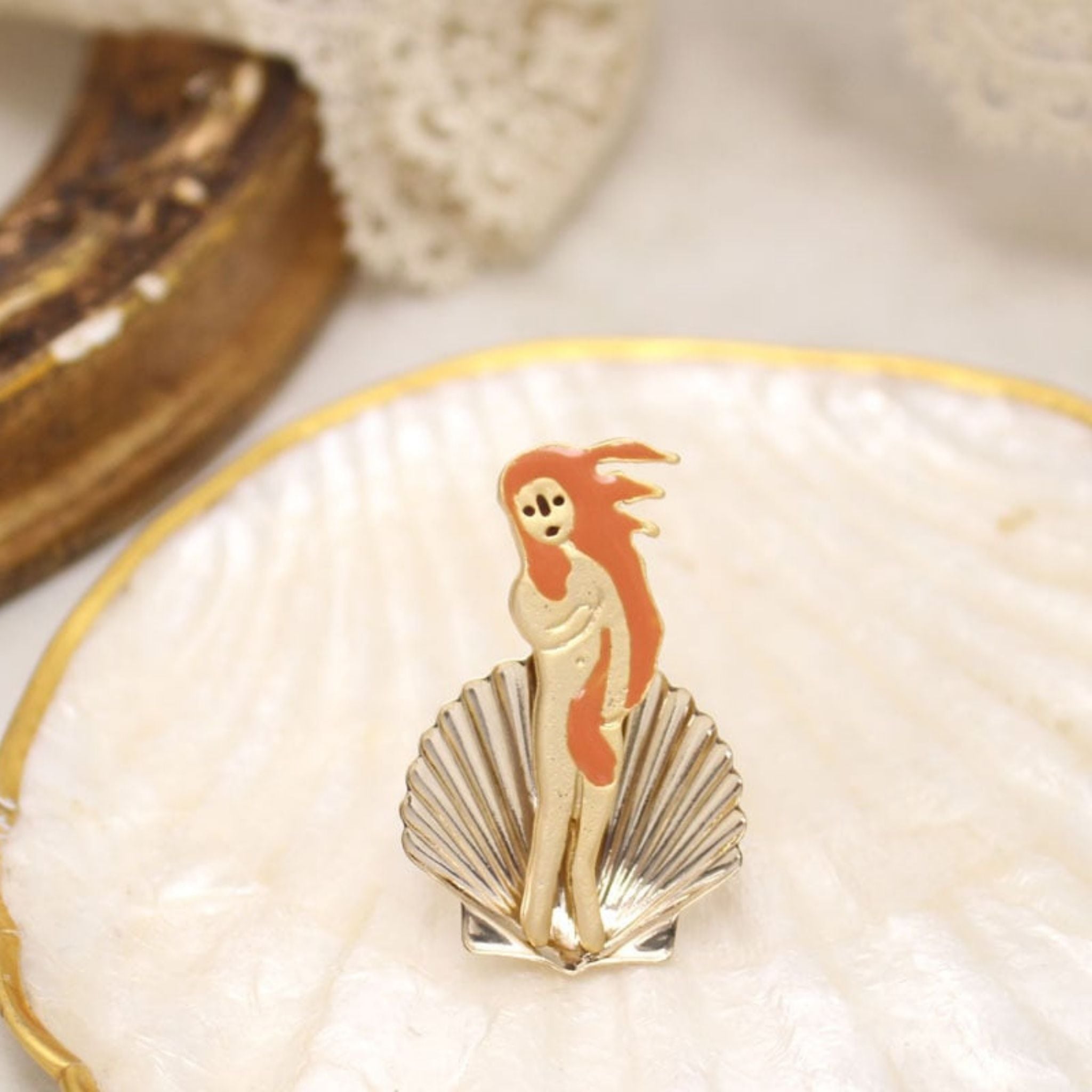 「ヴィーナスの誕生」が可愛らしいブローチになりました。ヴィーナスと貝殻がセパレートになっていて、立体感が魅力です。