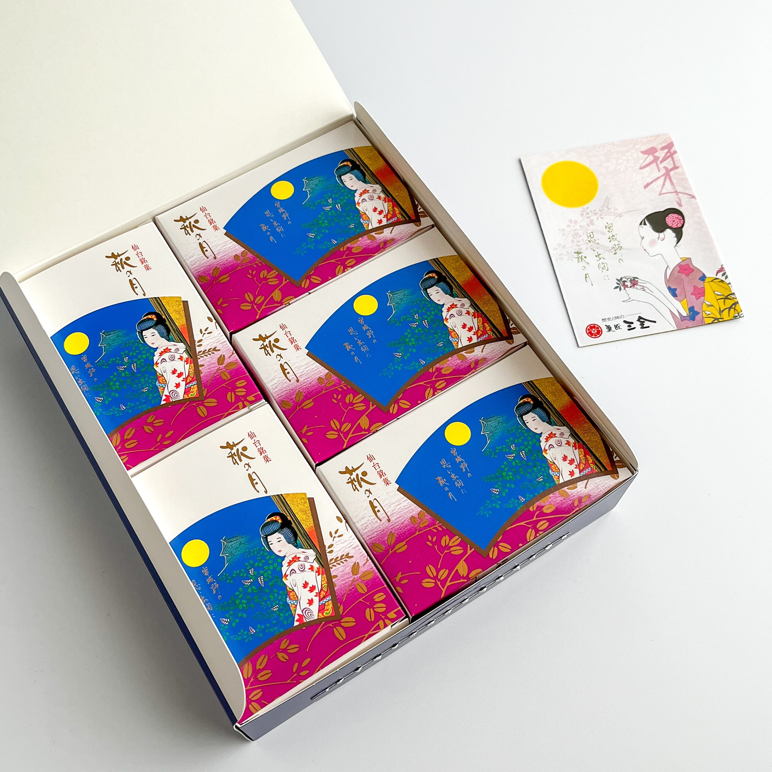 この特別パッケージは、見た目のインパクトだけでなく、芸術鑑賞と食の楽しみを同時に味わえる点もポイントです。手に取れば、まず目に飛び込む鮮やかな「星月夜」の世界。そして箱を開けば、東北を代表する和の銘菓が現れる――視覚と味覚の両方から「月」を堪能できる、贅沢なひとときをお届けします。