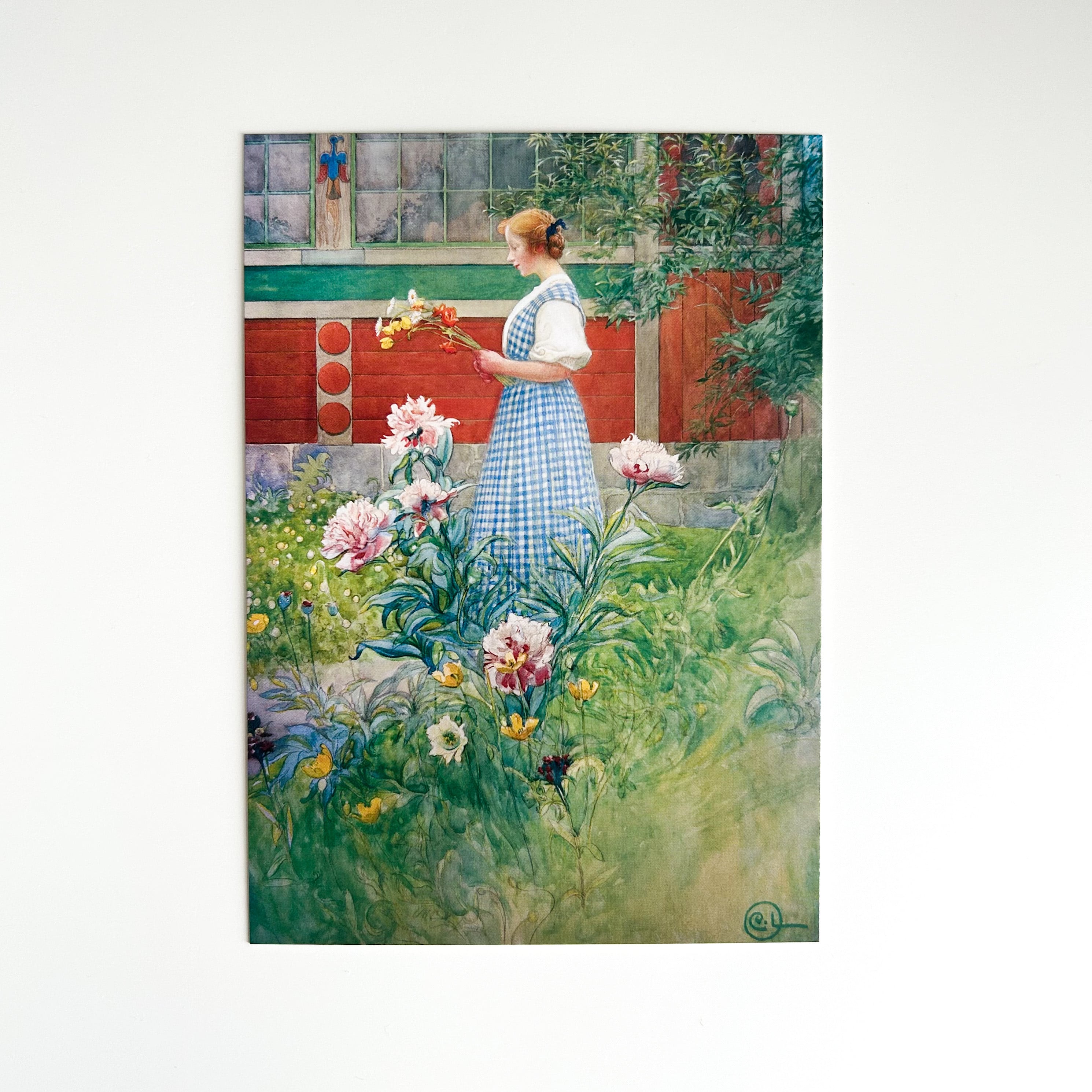 カール・ラーションは、19世紀後半から20世紀初頭にかけて活動したスウェーデンの画家です。特に水彩画で高い評価を受けています。若い頃は経済的に苦しい時期もありましたが、フランス滞在を通して外光主義的なレアリスムを取り入れ、自然光を生かした水彩表現を確立。また、日本美術から浮世絵の構図や線描の影響を受けたことにより、作品の画面構成に生かされ、後にアール・ヌーヴォーの先駆的表現として評価されています。帰国後は自宅を制作の場とし、妻や子どもたち、住まいの内部や庭など、スウェーデン中流家庭の日常を主な題材として描きました。1899年刊行の画集『わたしの家』は各国で翻訳出版され、温かみのある画風とともに、作品に描かれた住まいと暮らし方は、スウェーデンの住文化を象徴する一つの理想像として受け取られています。