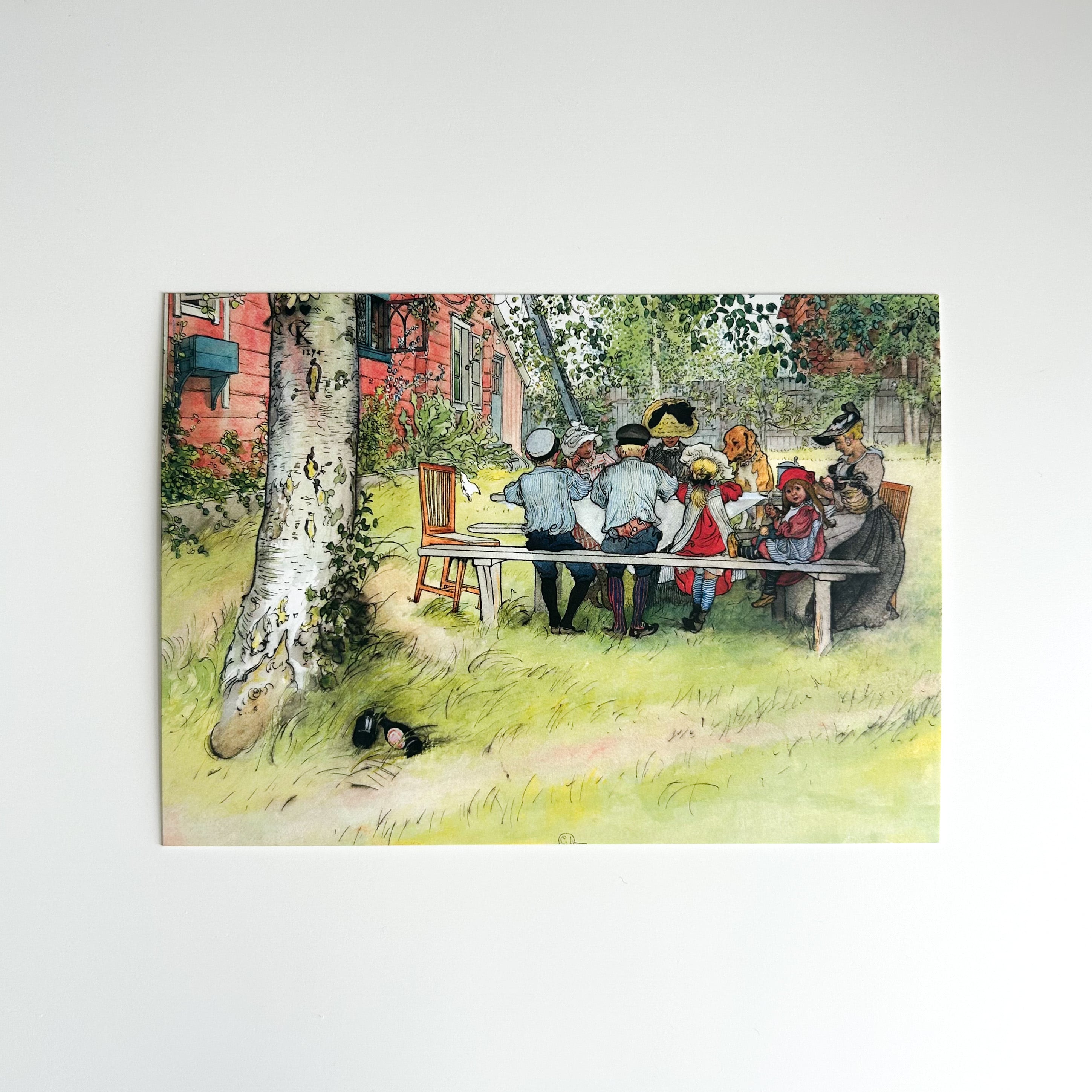 カール・ラーションは、19世紀後半から20世紀初頭にかけて活動したスウェーデンの画家です。特に水彩画で高い評価を受けています。若い頃は経済的に苦しい時期もありましたが、フランス滞在を通して外光主義的なレアリスムを取り入れ、自然光を生かした水彩表現を確立。また、日本美術から浮世絵の構図や線描の影響を受けたことにより、作品の画面構成に生かされ、後にアール・ヌーヴォーの先駆的表現として評価されています。帰国後は自宅を制作の場とし、妻や子どもたち、住まいの内部や庭など、スウェーデン中流家庭の日常を主な題材として描きました。1899年刊行の画集『わたしの家』は各国で翻訳出版され、温かみのある画風とともに、作品に描かれた住まいと暮らし方は、スウェーデンの住文化を象徴する一つの理想像として受け取られています。