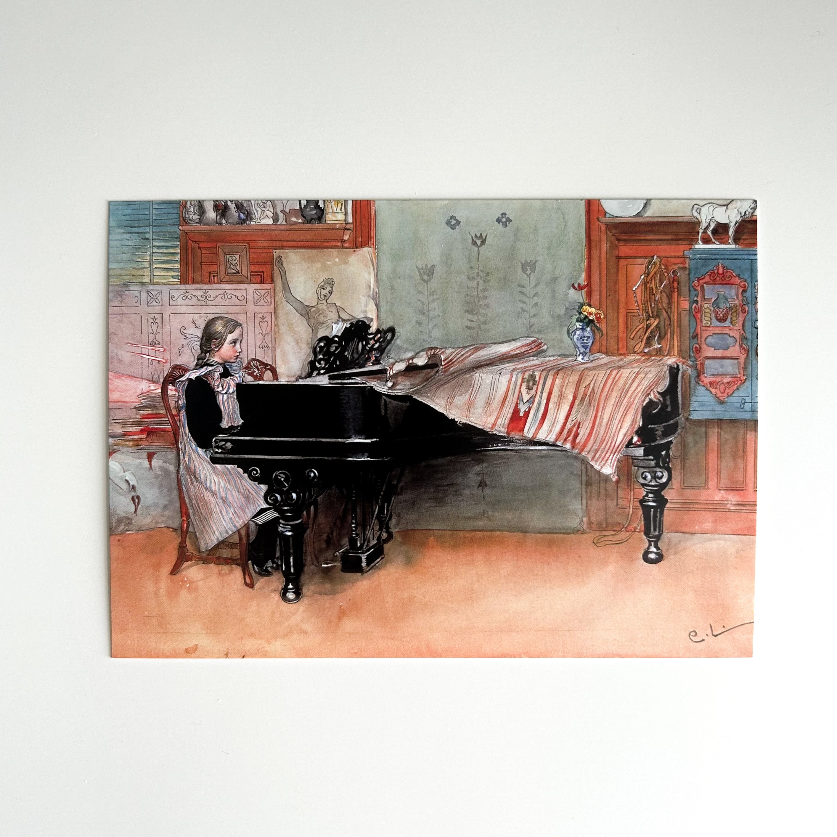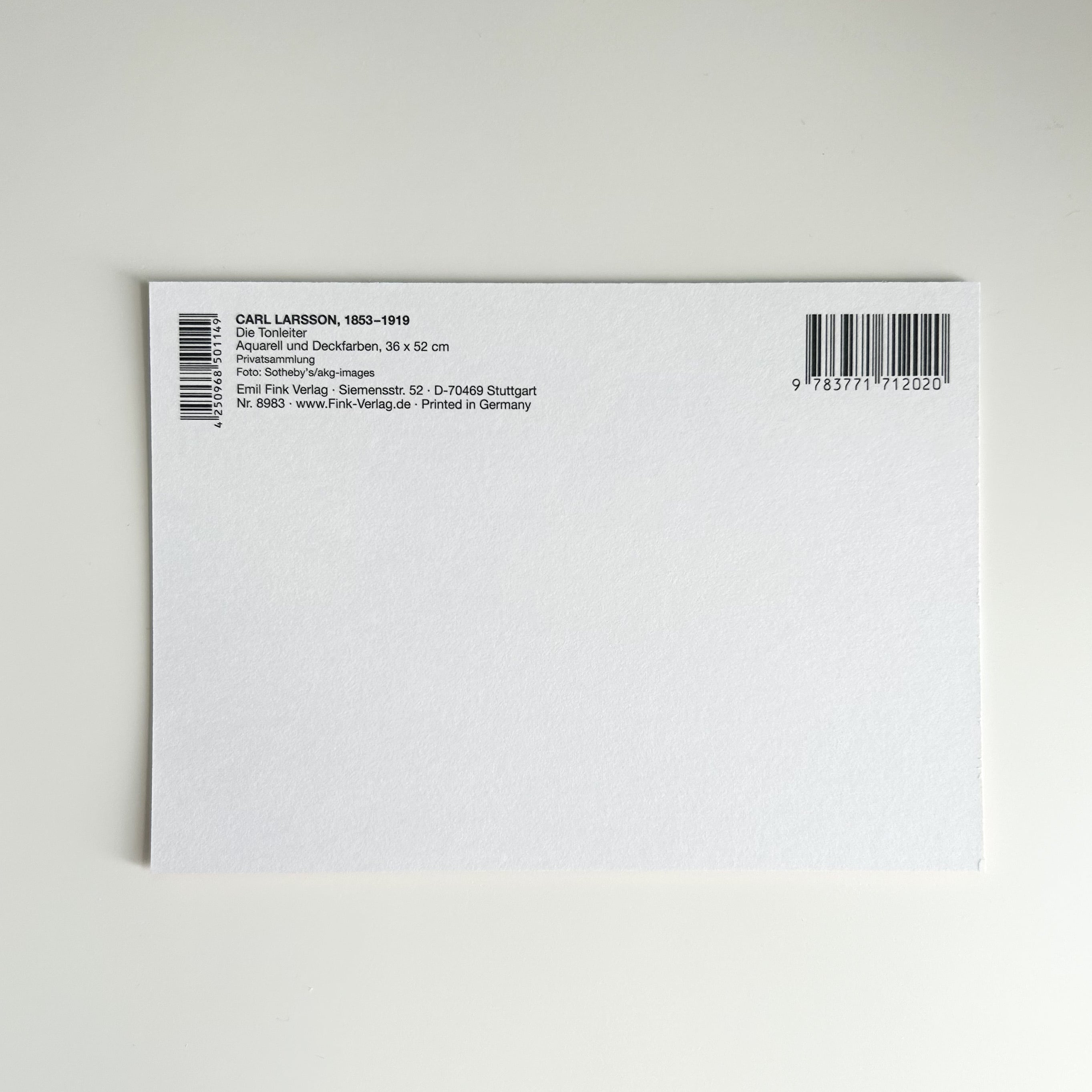 カール・ラーションは、19世紀後半から20世紀初頭にかけて活動したスウェーデンの画家です。特に水彩画で高い評価を受けています。若い頃は経済的に苦しい時期もありましたが、フランス滞在を通して外光主義的なレアリスムを取り入れ、自然光を生かした水彩表現を確立。また、日本美術から浮世絵の構図や線描の影響を受けたことにより、作品の画面構成に生かされ、後にアール・ヌーヴォーの先駆的表現として評価されています。帰国後は自宅を制作の場とし、妻や子どもたち、住まいの内部や庭など、スウェーデン中流家庭の日常を主な題材として描きました。1899年刊行の画集『わたしの家』は各国で翻訳出版され、温かみのある画風とともに、作品に描かれた住まいと暮らし方は、スウェーデンの住文化を象徴する一つの理想像として受け取られています。