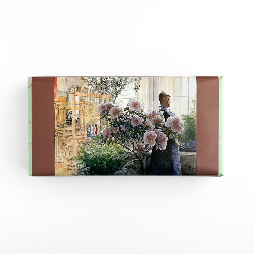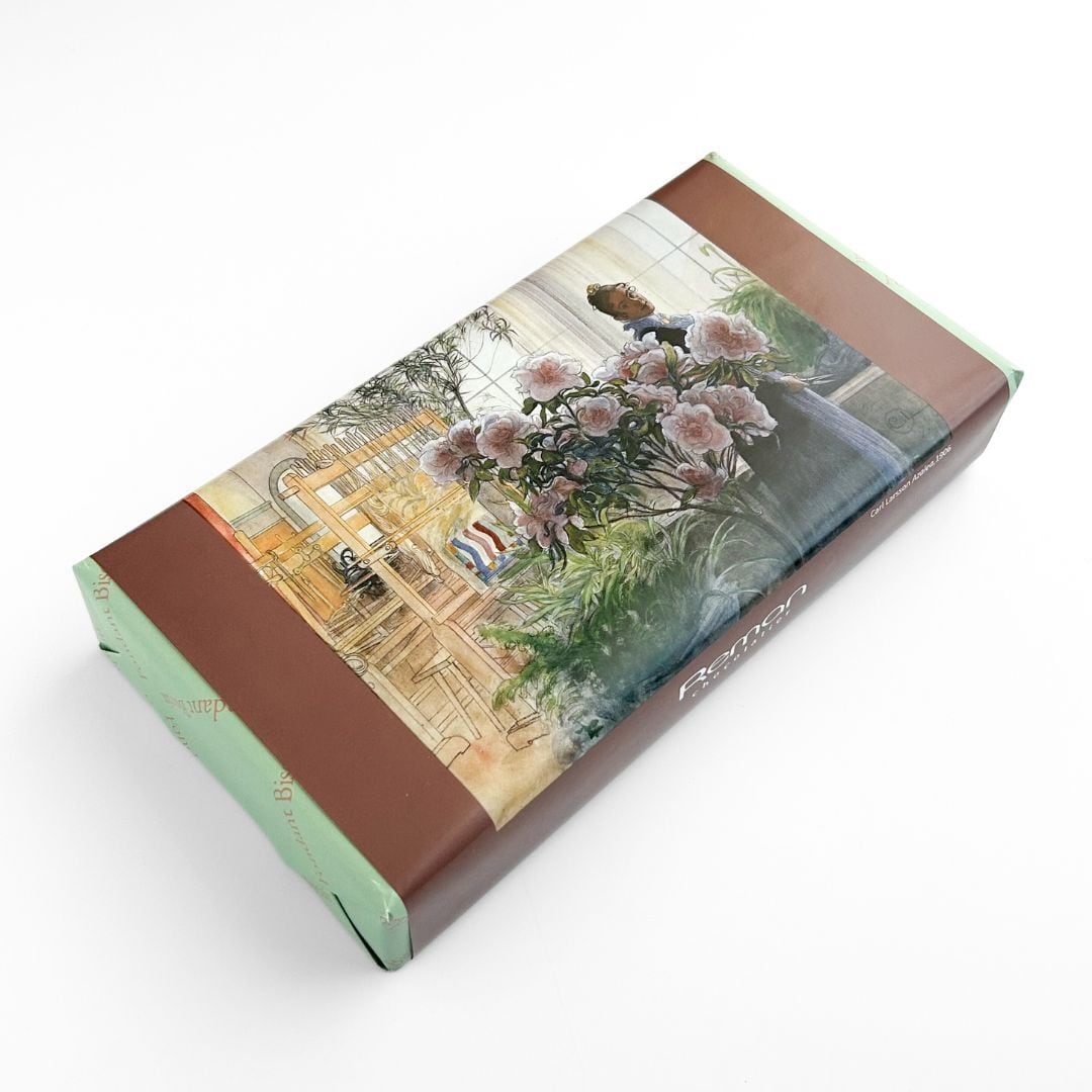 濃厚なチョコレートのコクと、口の中でほどけるようなやさしい口溶けが特徴の新感覚クッキーです。カール・ラーションの作品をあしらい、やわらかな色彩や穏やかな雰囲気が、菓子のやさしい食感と静かに穏やかに調和する、当店のオリジナルパッケージでお届けします。贈りものにも適した箱入り商品です。