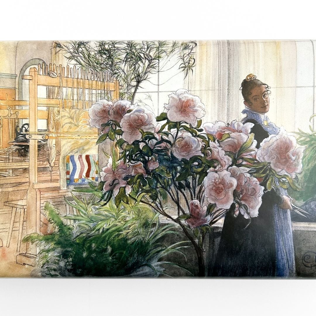 カール・ラーションは、19世紀後半から20世紀初頭にかけて活動したスウェーデンの画家です。特に水彩画で高い評価を受けています。若い頃は経済的に苦しい時期もありましたが、フランス滞在を通して外光主義的なレアリスムを取り入れ、自然光を生かした水彩表現を確立。また、日本美術から浮世絵の構図や線描の影響を受けたことにより、作品の画面構成に生かされ、後にアール・ヌーヴォーの先駆的表現として評価されています。帰国後は自宅を制作の場とし、妻や子どもたち、住まいの内部や庭など、スウェーデン中流家庭の日常を主な題材として描きました。1899年刊行の画集『わたしの家』は各国で翻訳出版され、温かみのある画風とともに、作品に描かれた住まいと暮らし方は、スウェーデンの住文化を象徴する一つの理想像として受け取られています。