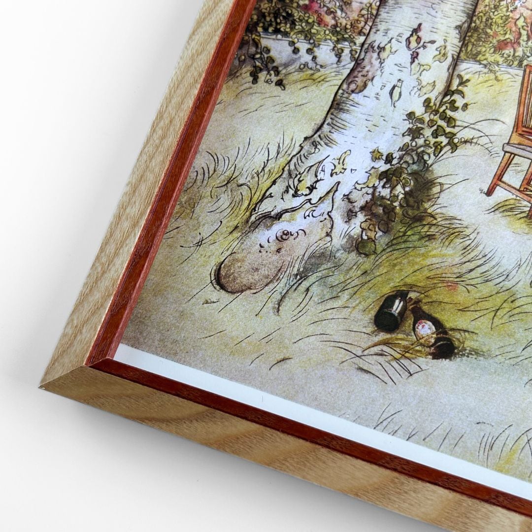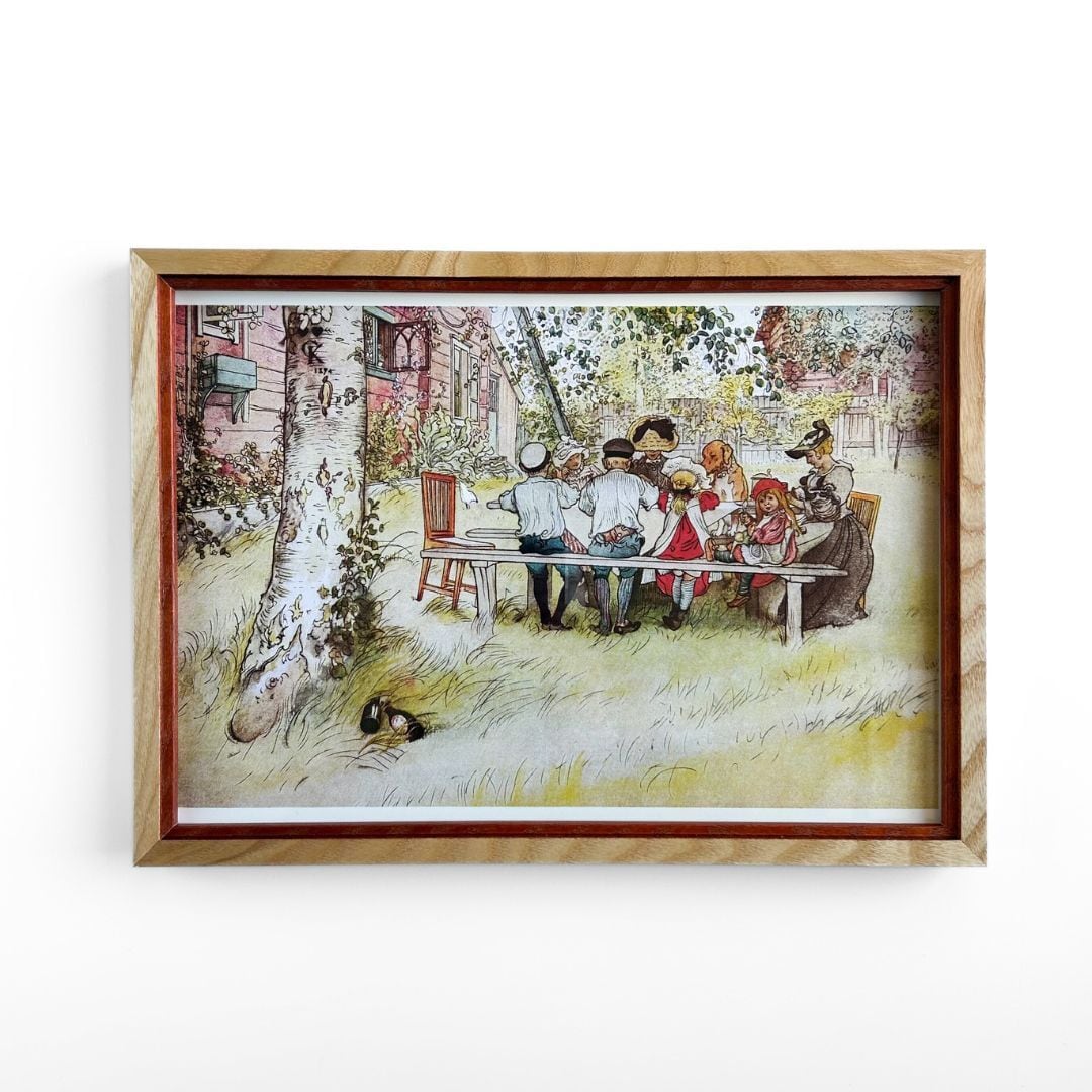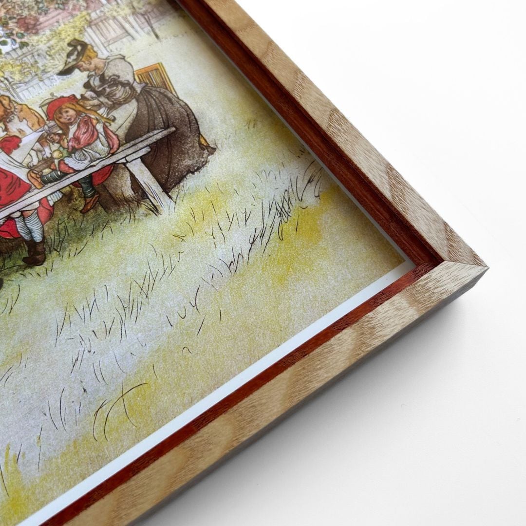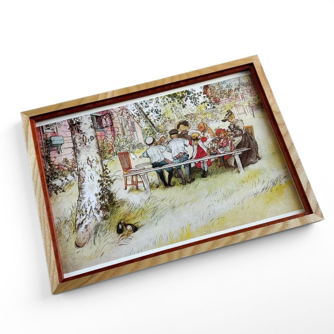 カール・ラーションの作品「大きな白樺での朝食」に合わせてミュージアムショップがセレクトした木製フレームをセットしました。カールラーションの作品が、お部屋を華やかに彩ってくれます。