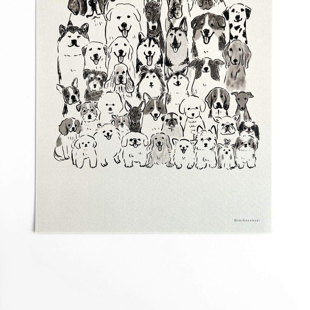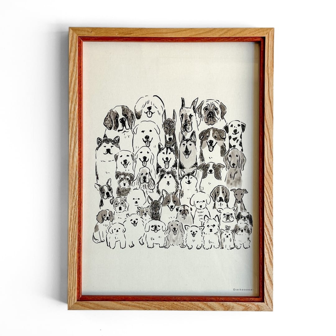せいこせんせい アートポスター 犬集合A