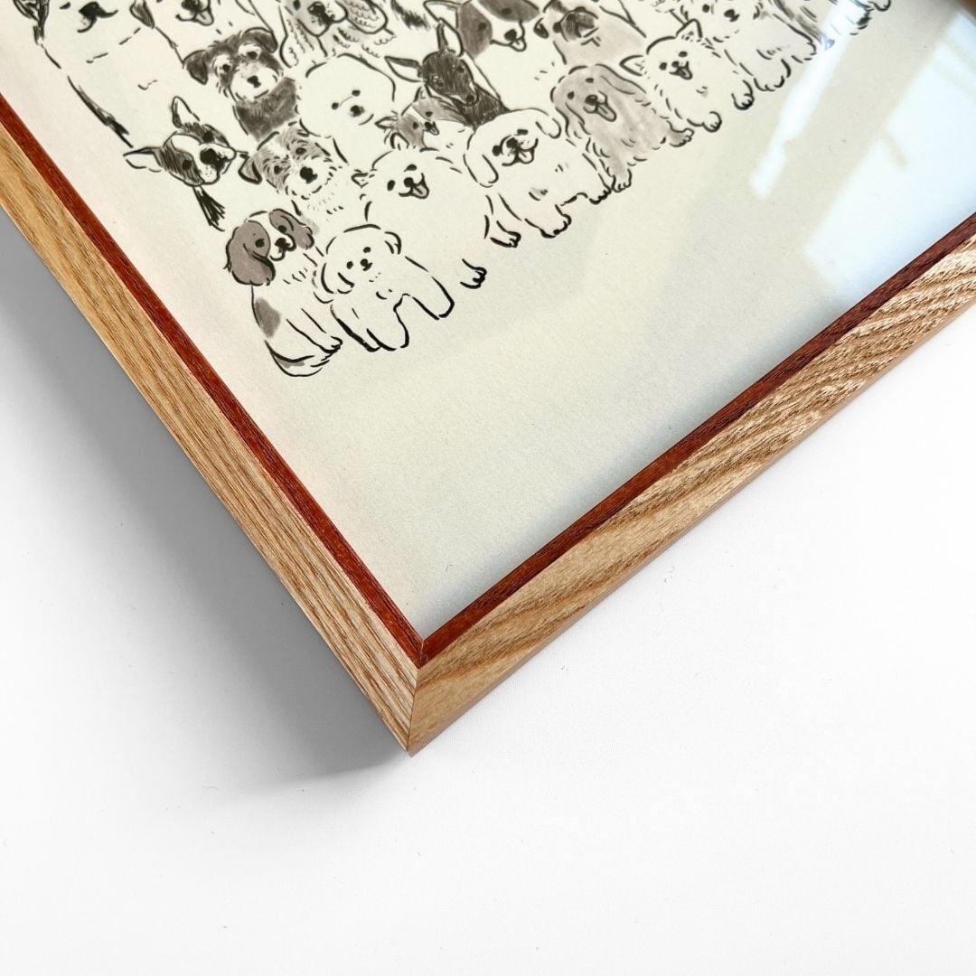 生き生きとした表情の犬たちを描くアーティストとして活躍している、C/STOREおすすめの作家「せいこせんせい」によるポスターが登場しました。届いてすぐにお部屋に飾ることができる、フレームセットでご用意しました。シンプルなナチュラルカラーのフレームは、さまざまなテイストのお部屋やインテリアに自然と馴染みます。優しいタッチと愛くるしい表情で描かれた動物たちから伝わる、あたたかな想いを、ぜひお楽しみください。