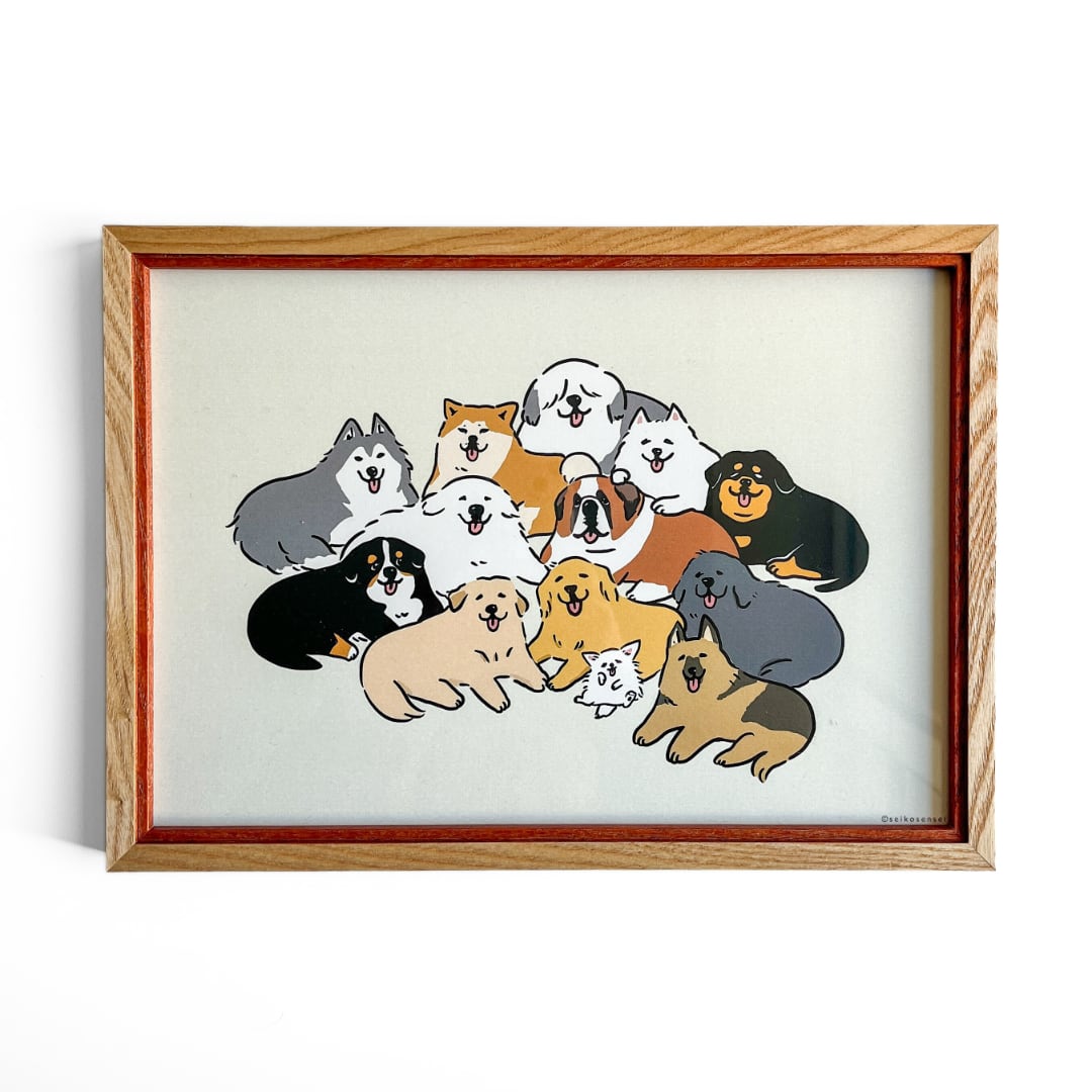 せいこせんせい アートポスター 犬集合B