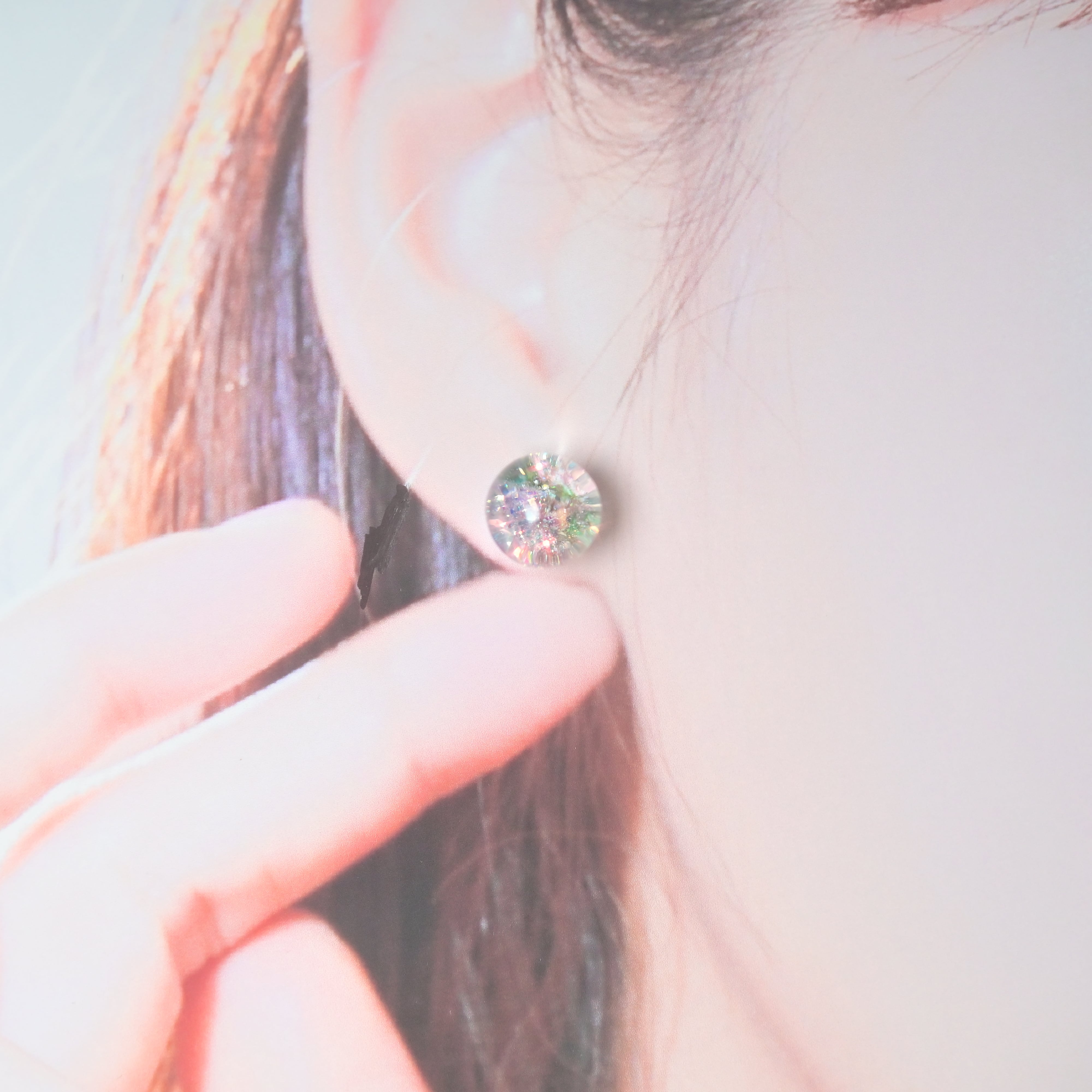 透明樹脂を使用しているため、美しい光沢を持ちながら、耐久性の高さと軽さが特徴です。「自分だけのアートを身にまとう」特別なアクセサリーとして、また大切な人への贈り物としても喜ばれる一品です。