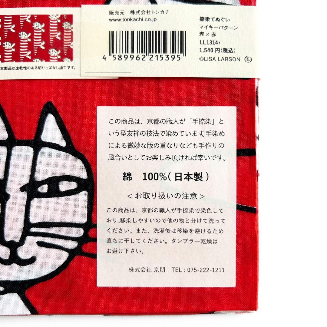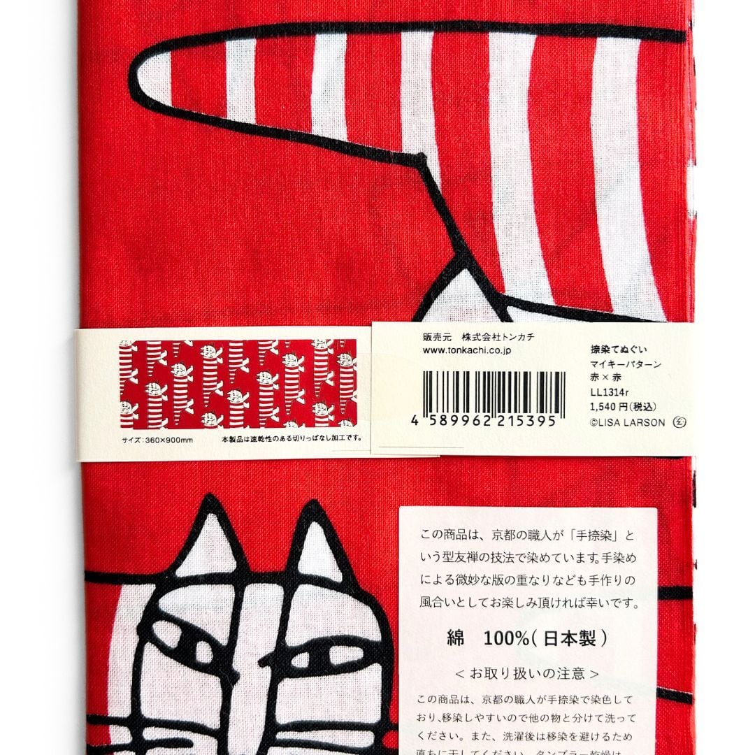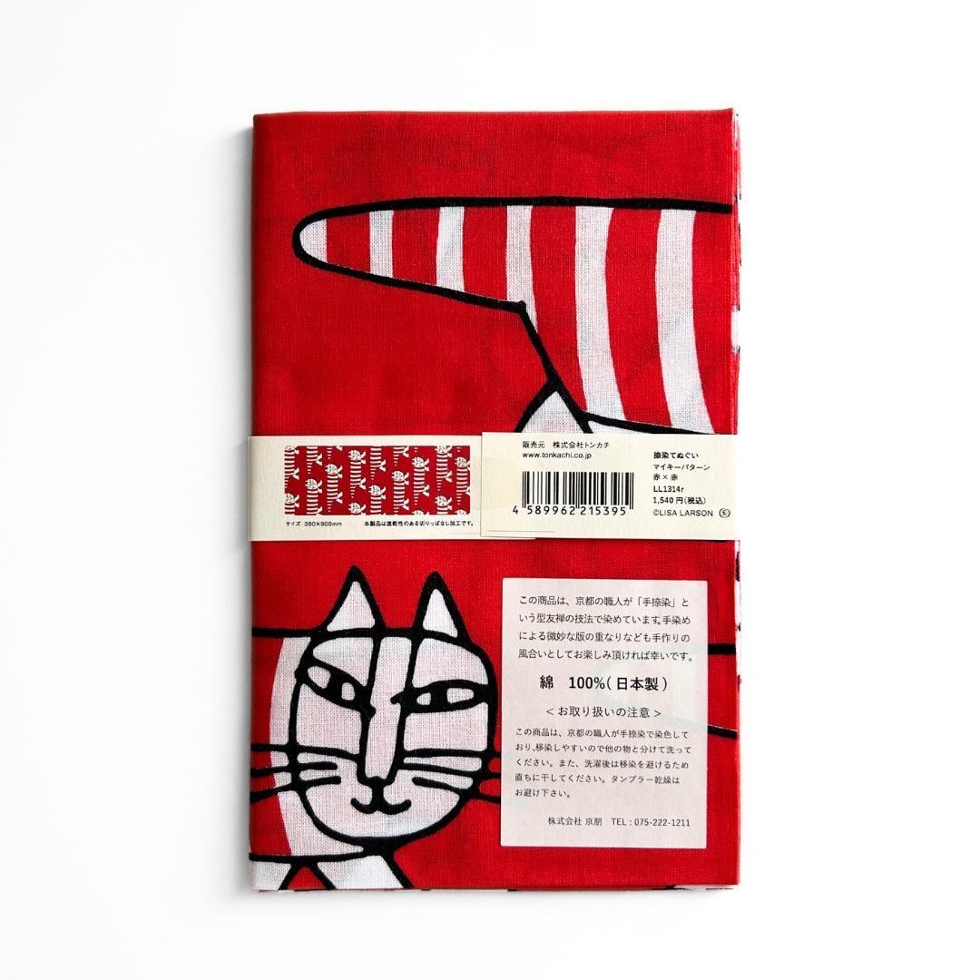 リサ・ラーソンの愛らしいデザインが楽しめる北欧テイストの手拭いです。愛らしいキャラクターたちを、京都の職人が受け継ぐ伝統技法「捺染(なっせん)」によって丁寧に染め上げました。手拭いは吸水性がよく、乾きやすいのも魅力。タオルとしてはもちろん、キッチンクロスやランチョンマット、収納の目隠しなど、インテリアにもおすすめです。
