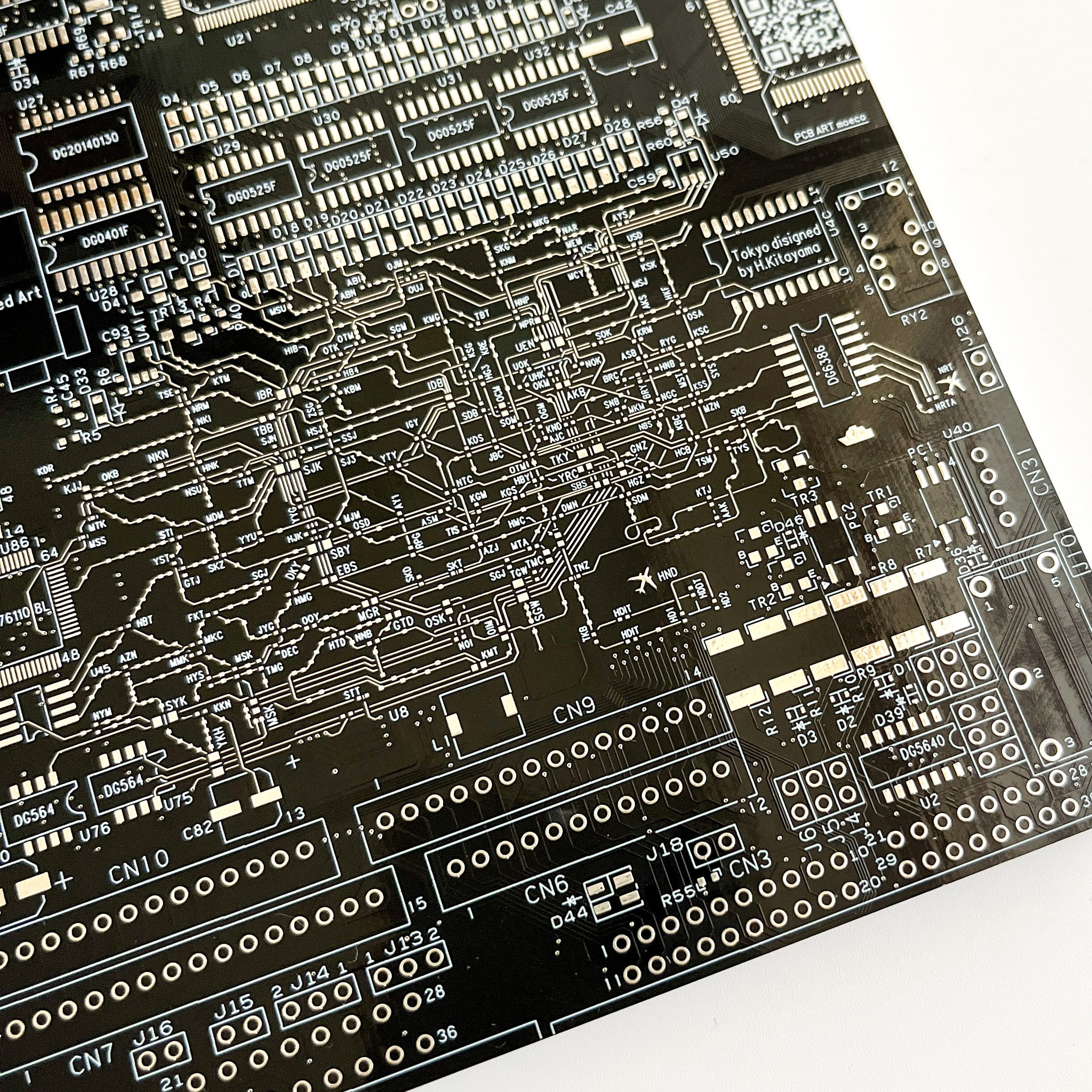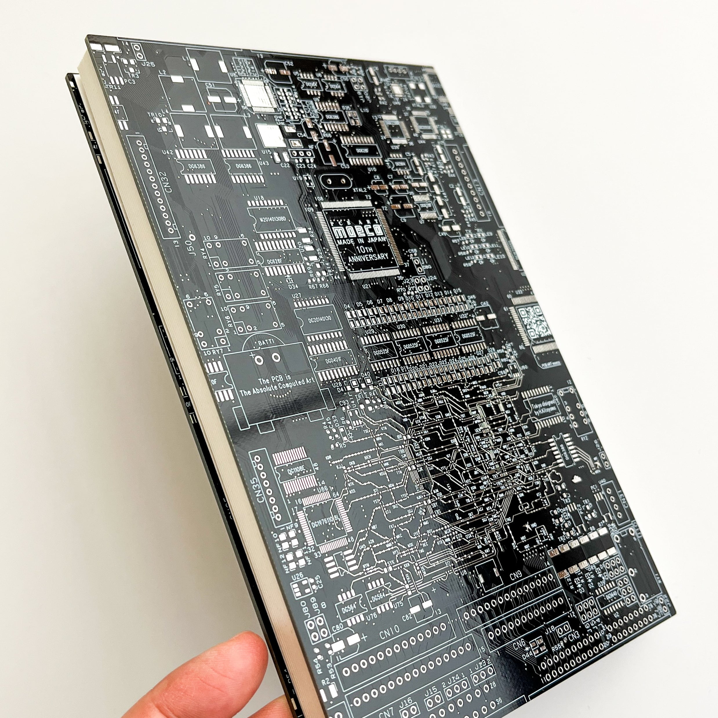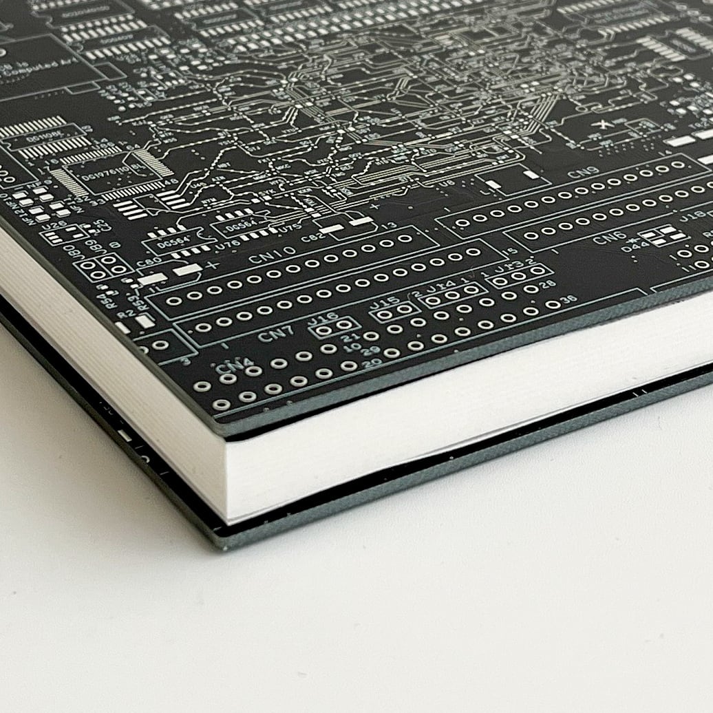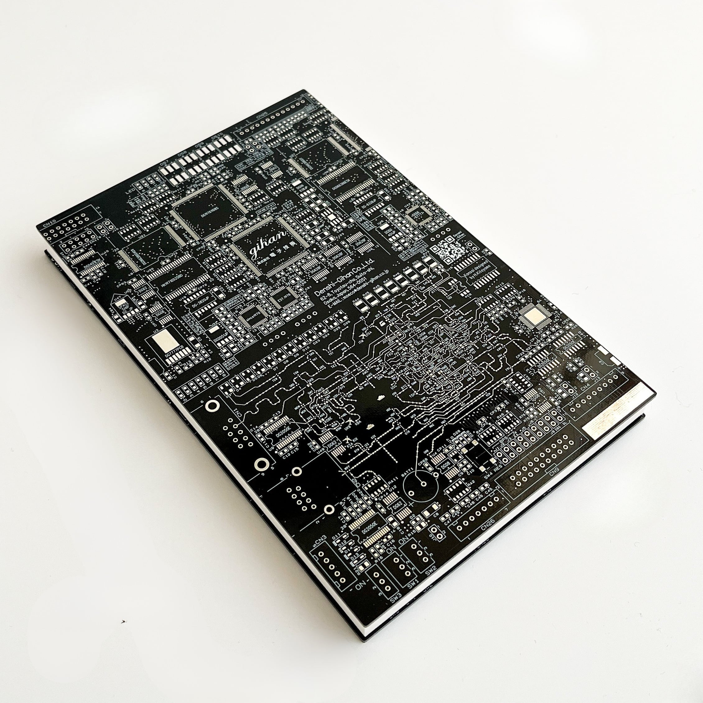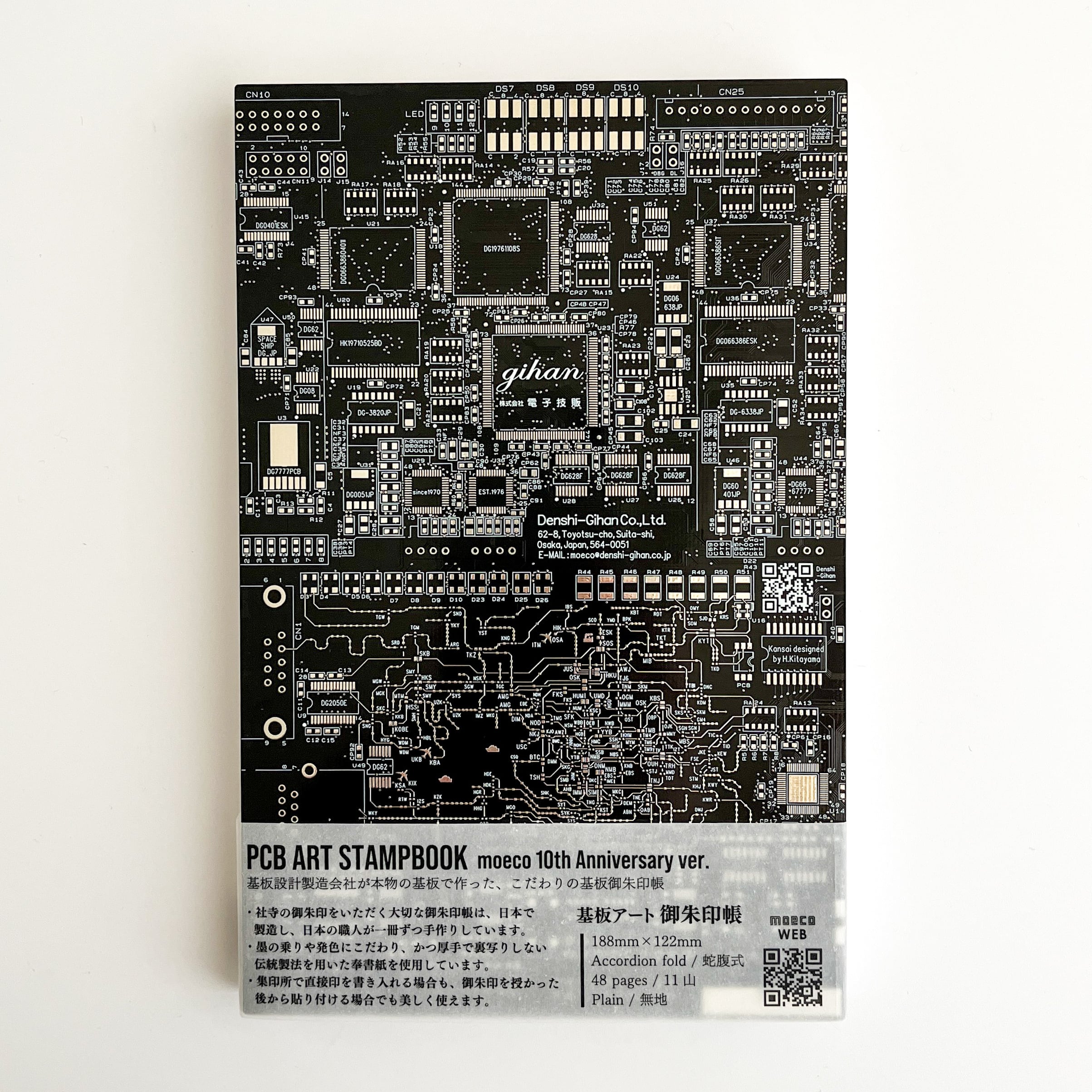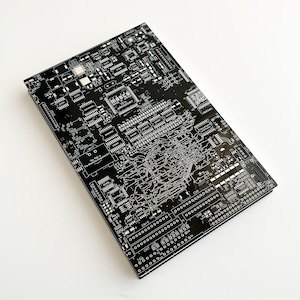 表表紙と裏表紙に本物の基板(188×122×1.6mm)を2枚使った重厚な基板アートの御朱印帳です。基板アートノートブックと御朱印帳のためにイチからデザインしました(ノートブックと御朱印帳は同じデザインです)。表表紙には「東京回路線図」、裏表紙には「関西回路線図」をさりげなくデザインしています。