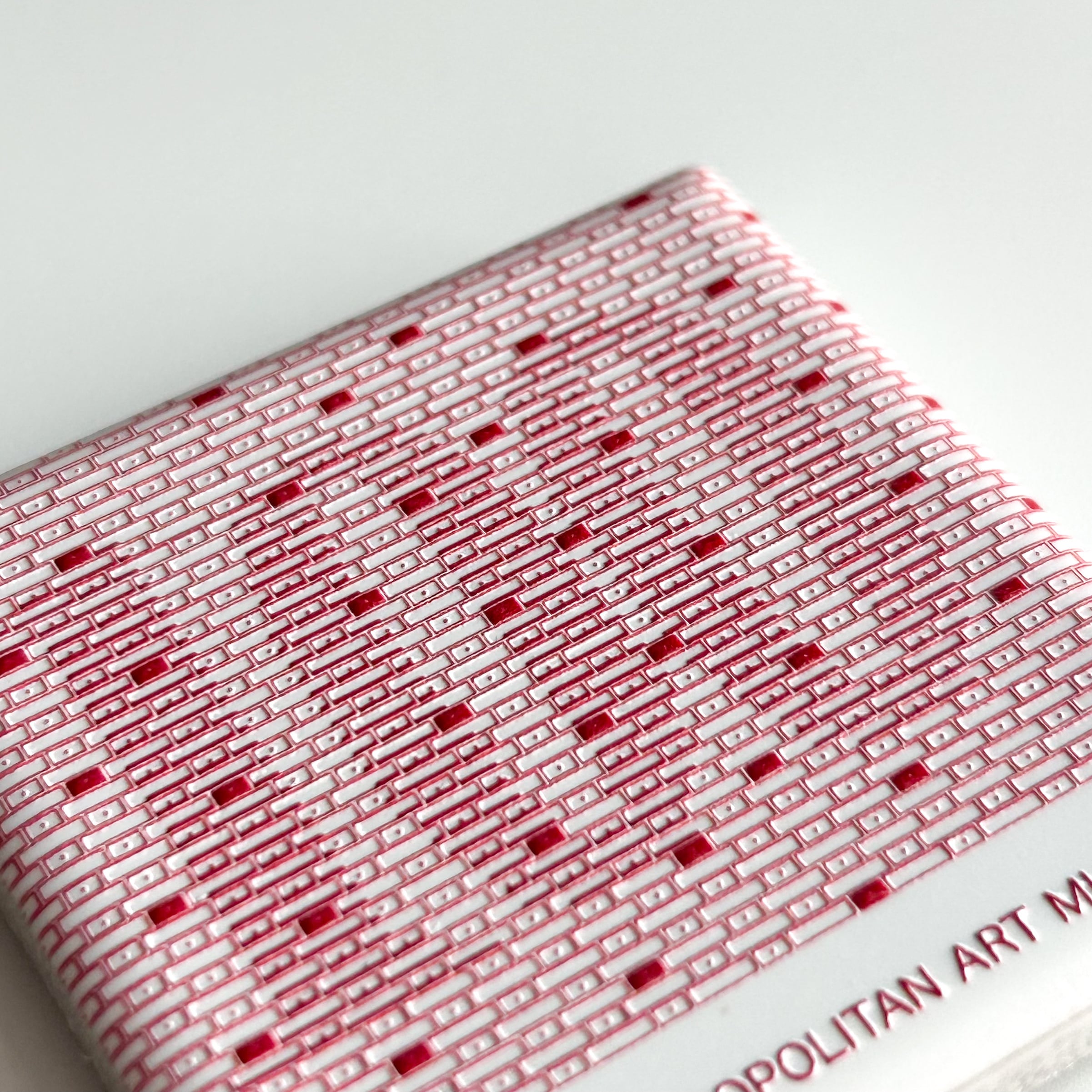 東京都美術館開館100周年を記念した、メモリアルなオリジナルグッズ。建物を彩る印象的な赤いタイルを背景に、100周年の特別デザインをあしらった美濃焼タイル製マグネットです。