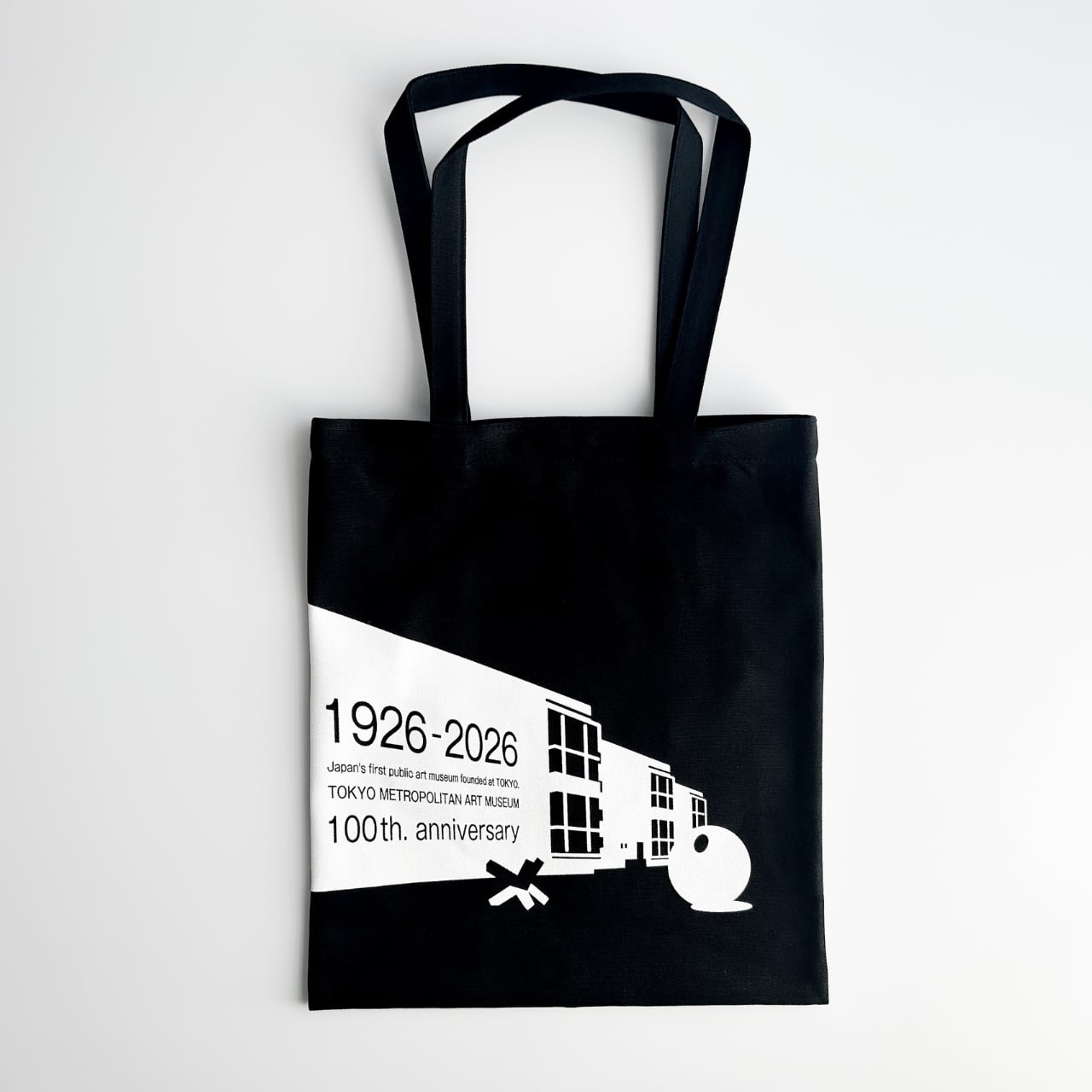 東京都美術館開館100周年を記念した、メモリアルなオリジナルグッズ。表面には、100年の歴史を感じる、赤タイルが特徴的な建物と、象徴的なモニュメント。裏面には、100周年の記念ロゴがデザインされたトートバッグです。