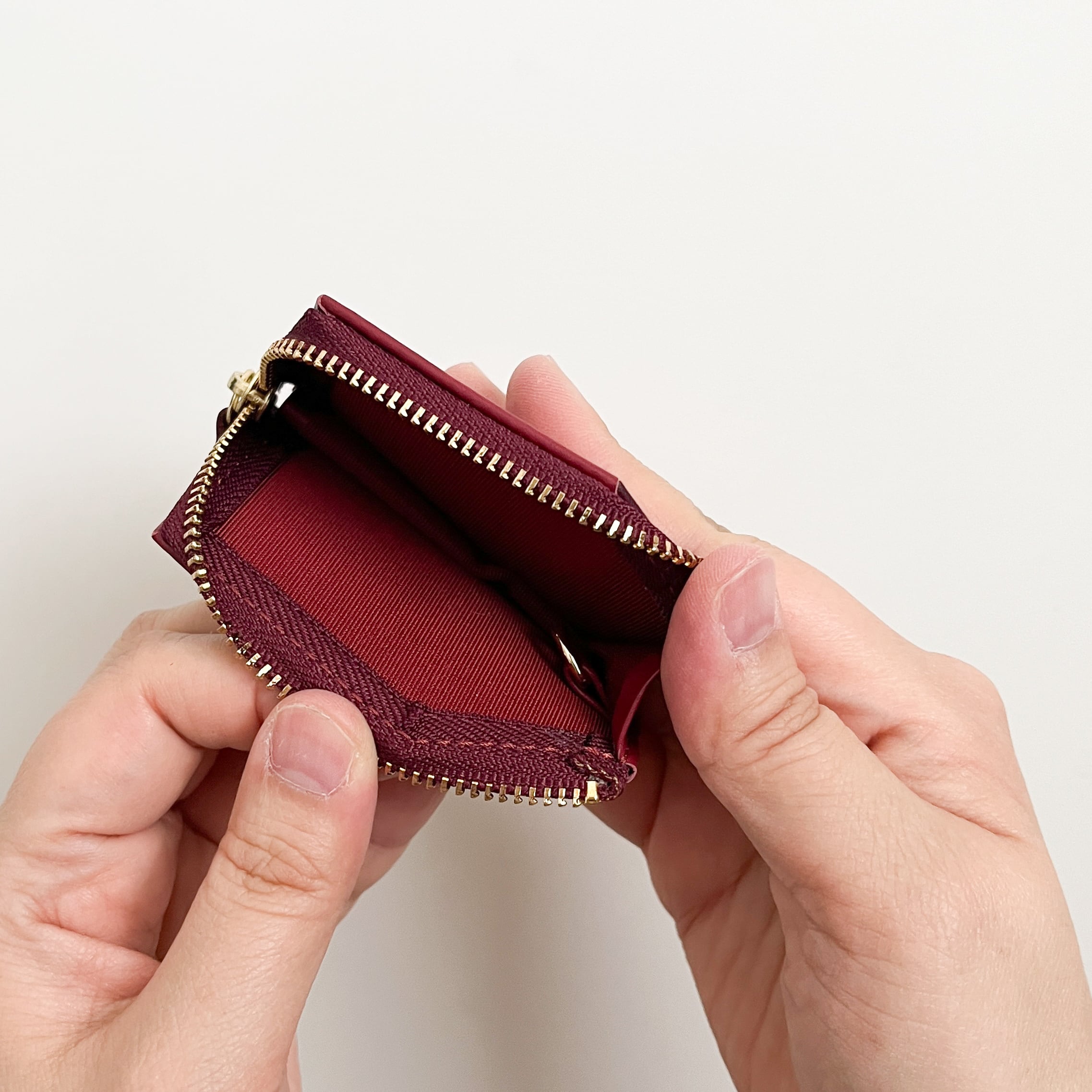 表面にシボ(シワ模様)がなく、なめらかに仕上げられた本革のスムースレザーを使用。革本来の落ち着いた光沢と、しっとりとした手触りが特徴です。内側に鍵などを取り付けられるリング付きで、ちょっとした貴重品入れに重宝します。シンプルなデザインだからこそ際立つ、素材の上質さと職人の仕立ての美しさ、長く愛用したくなる一品です。