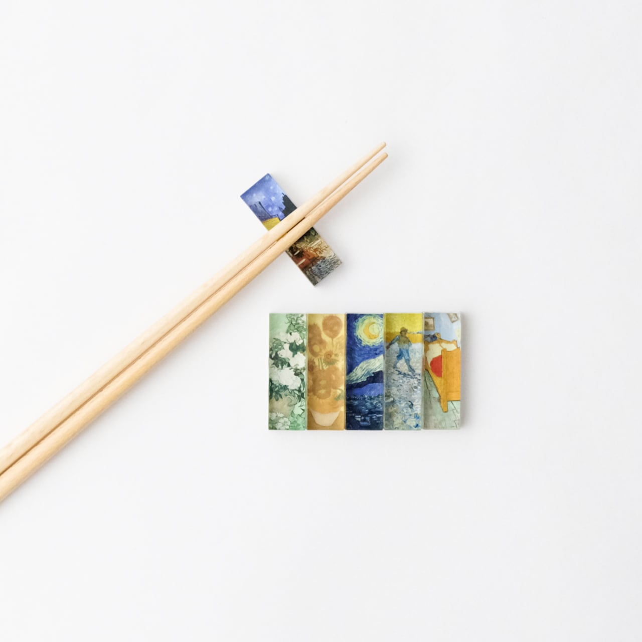 涼し気なアクリルの透明感の中に絵画が浮かび上がる、アートな箸置きセットです。