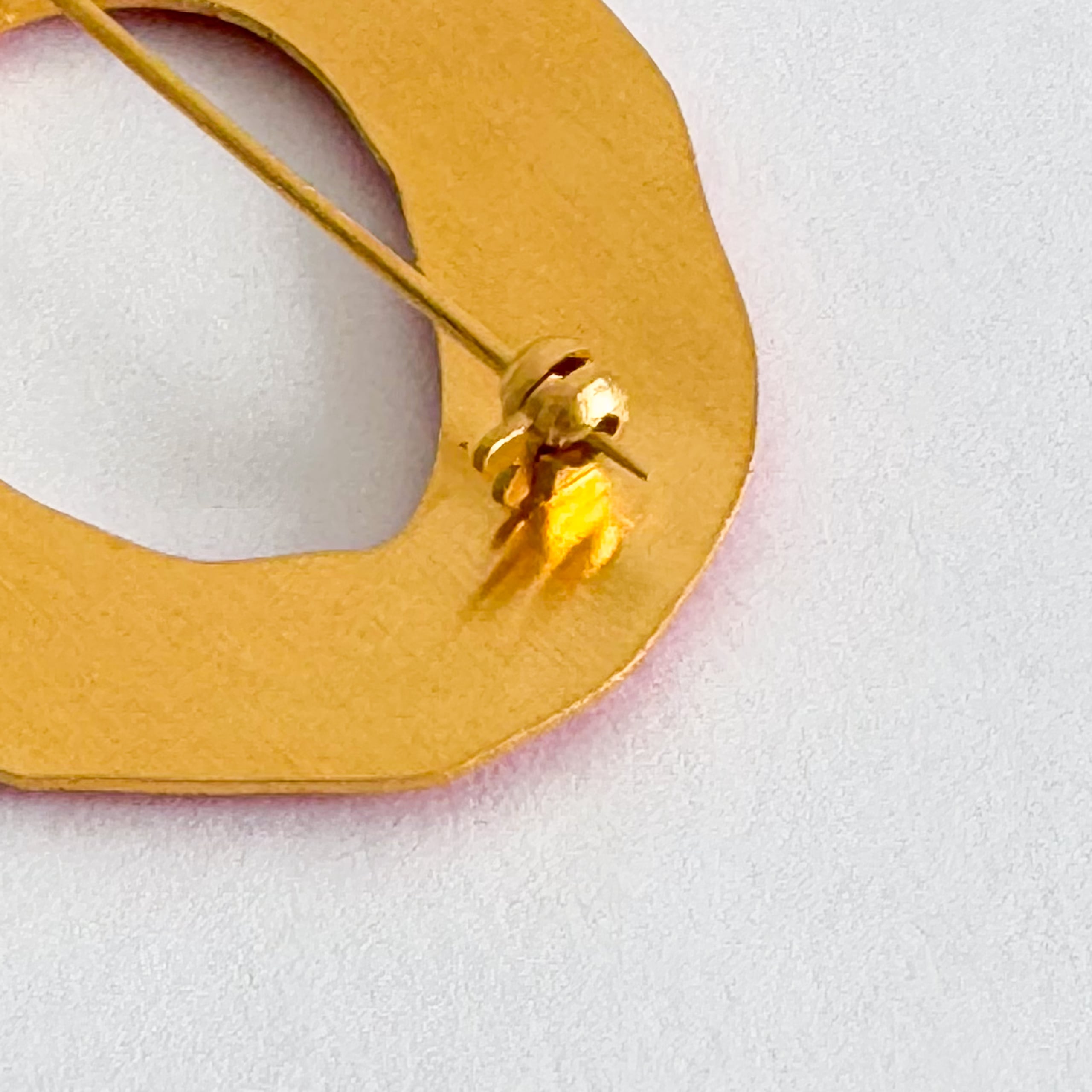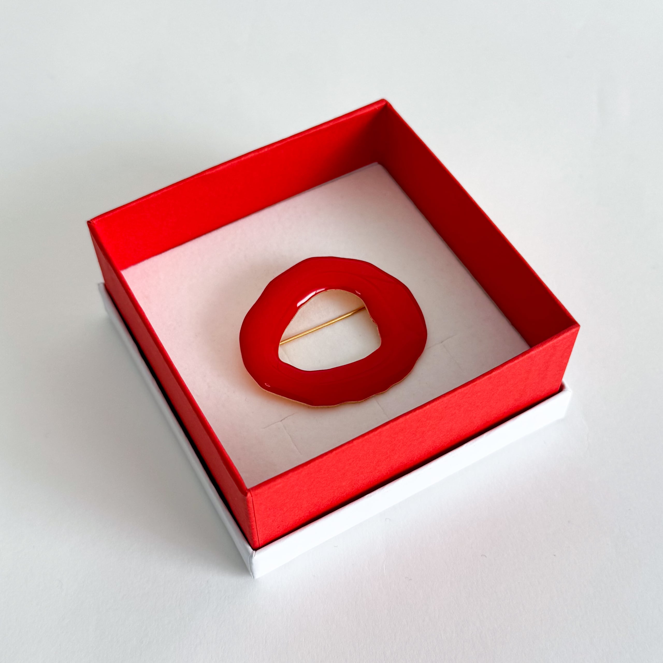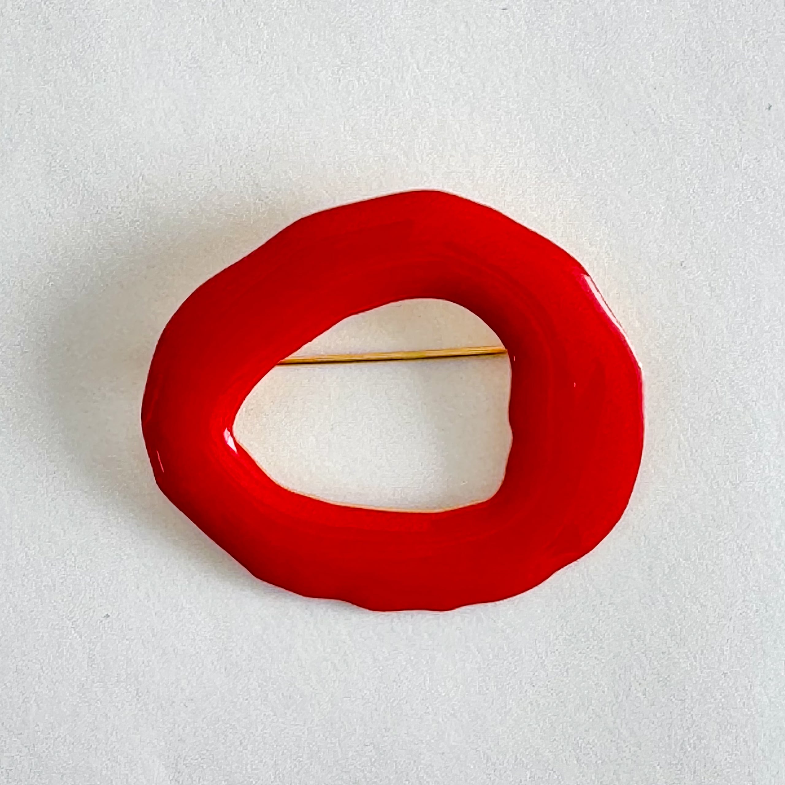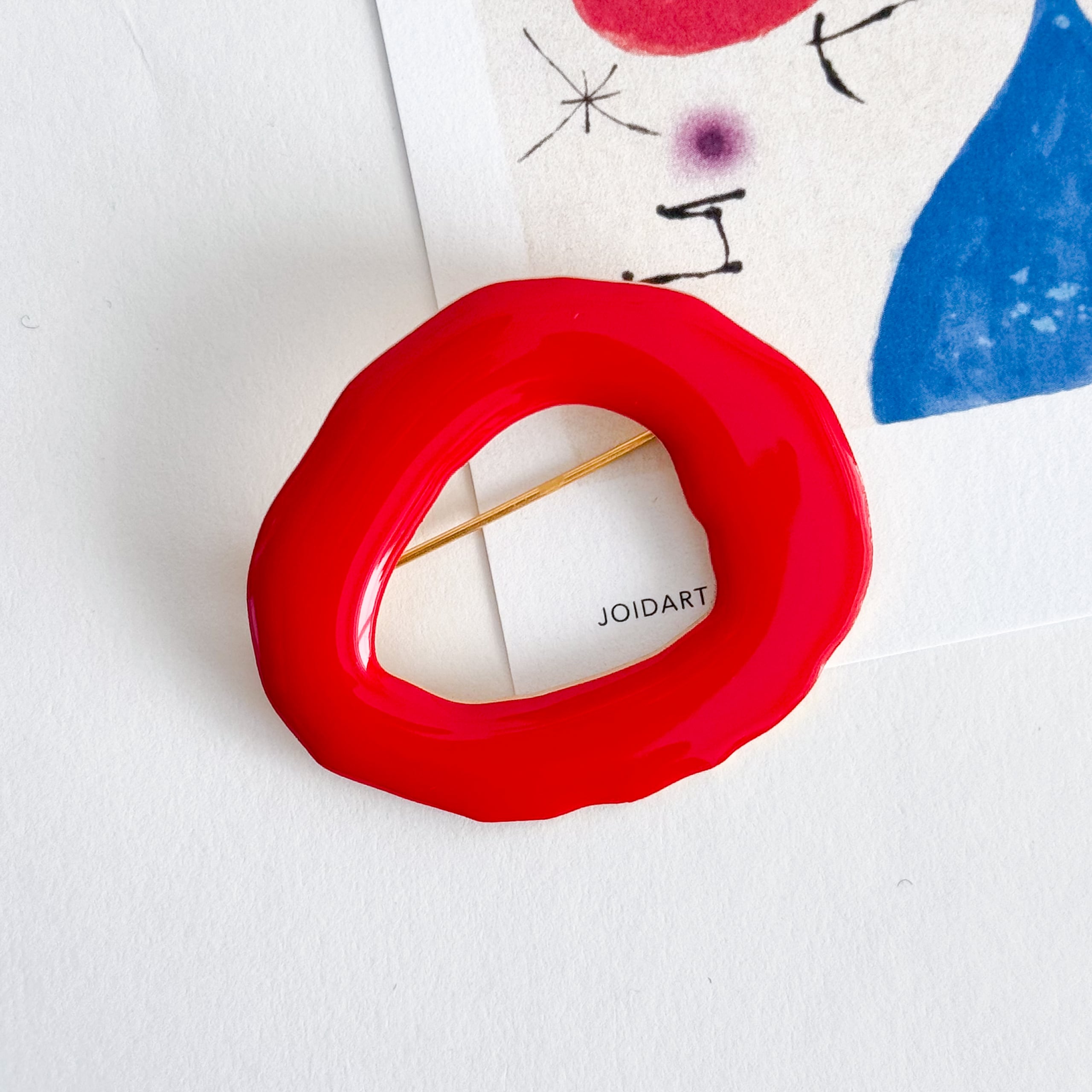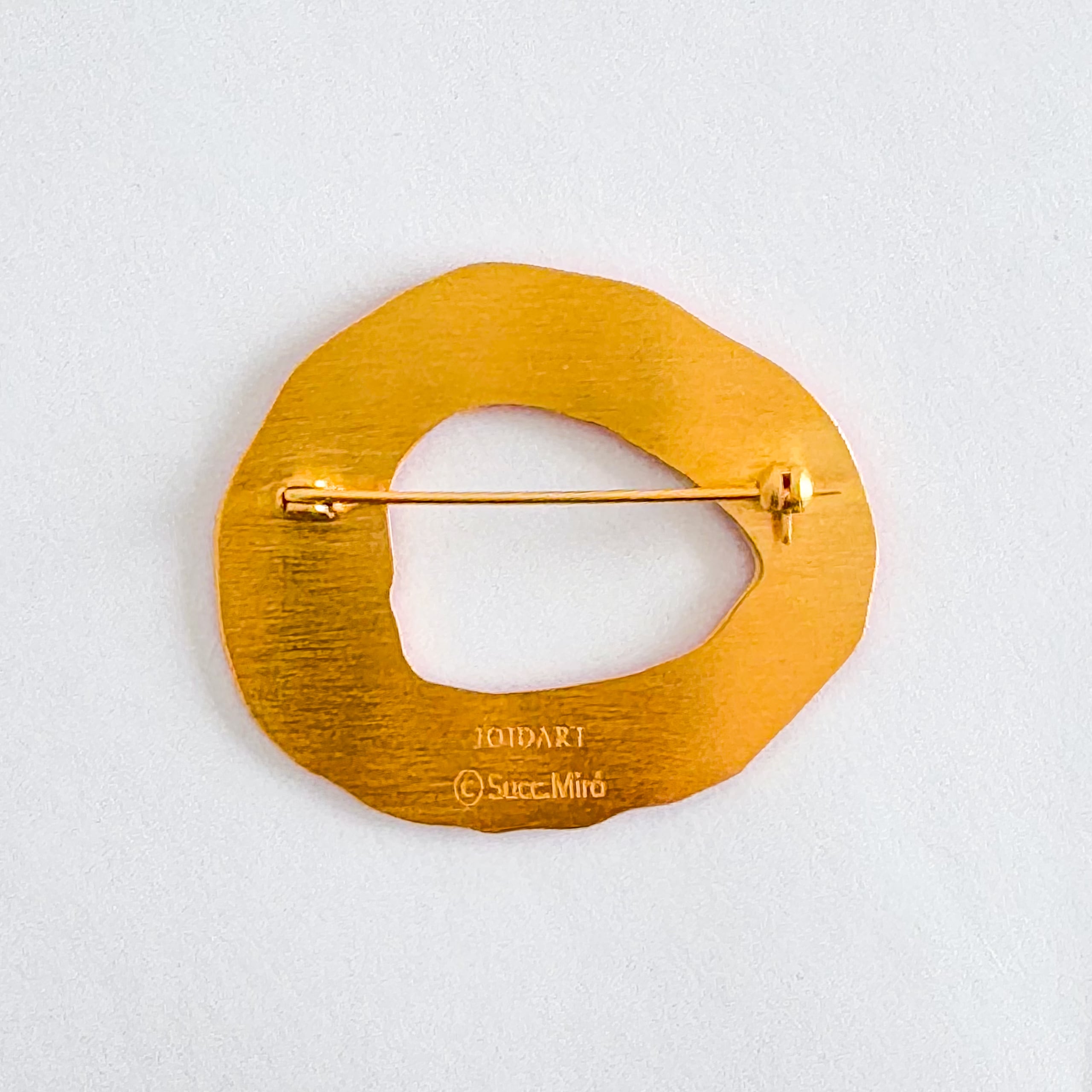 ミロ作品のモチーフが胸元を飾るブローチに。不規則な真鍮の円に24Kゴールドがコーティングされ、インパクト抜群の赤いエナメルで更なる色彩をプラス。創造性と気品を兼ね備えた個性派デザインが、胸元を華やかに演出してくれます。ミロの詩的な世界観は、シンプルながら目を惹く大人のおしゃれを楽しめます。